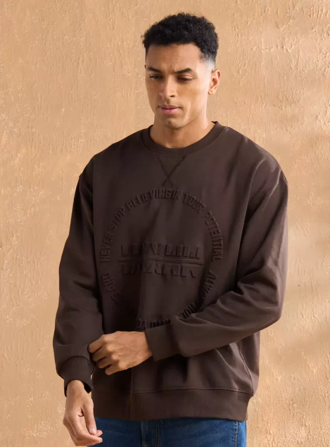 Luxurious Embossed Detail: Features a unique raised pattern, logo, or text that adds a touch of high-end texture and visual interest, setting it apart from basic sweatshirts.