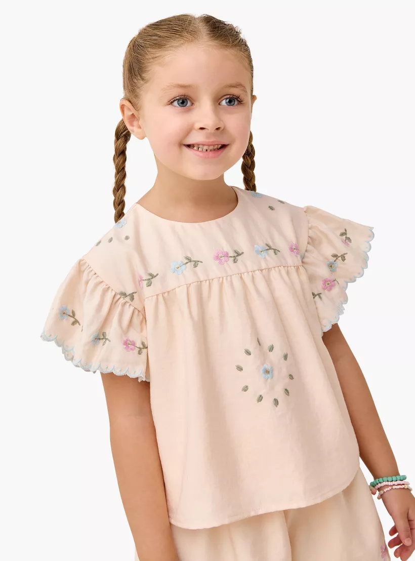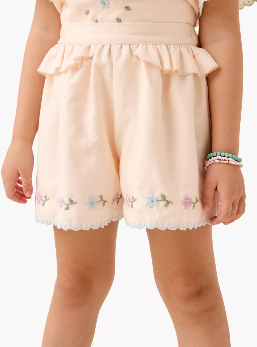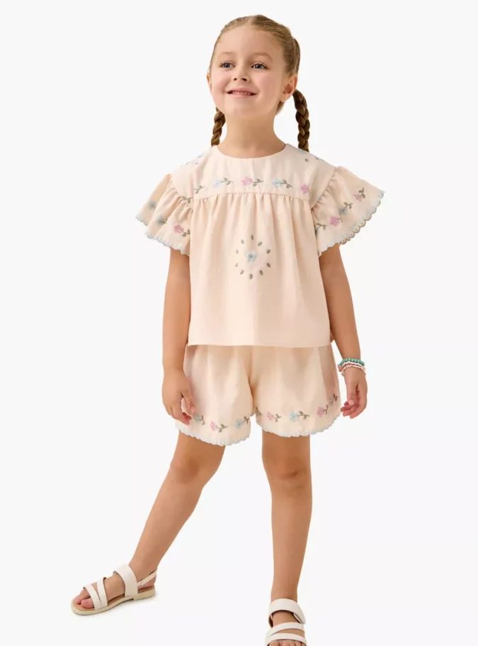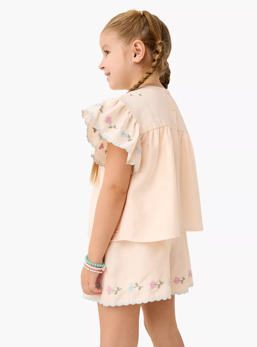 Embroidered Ruffled Sleeve Top and Shorts Set