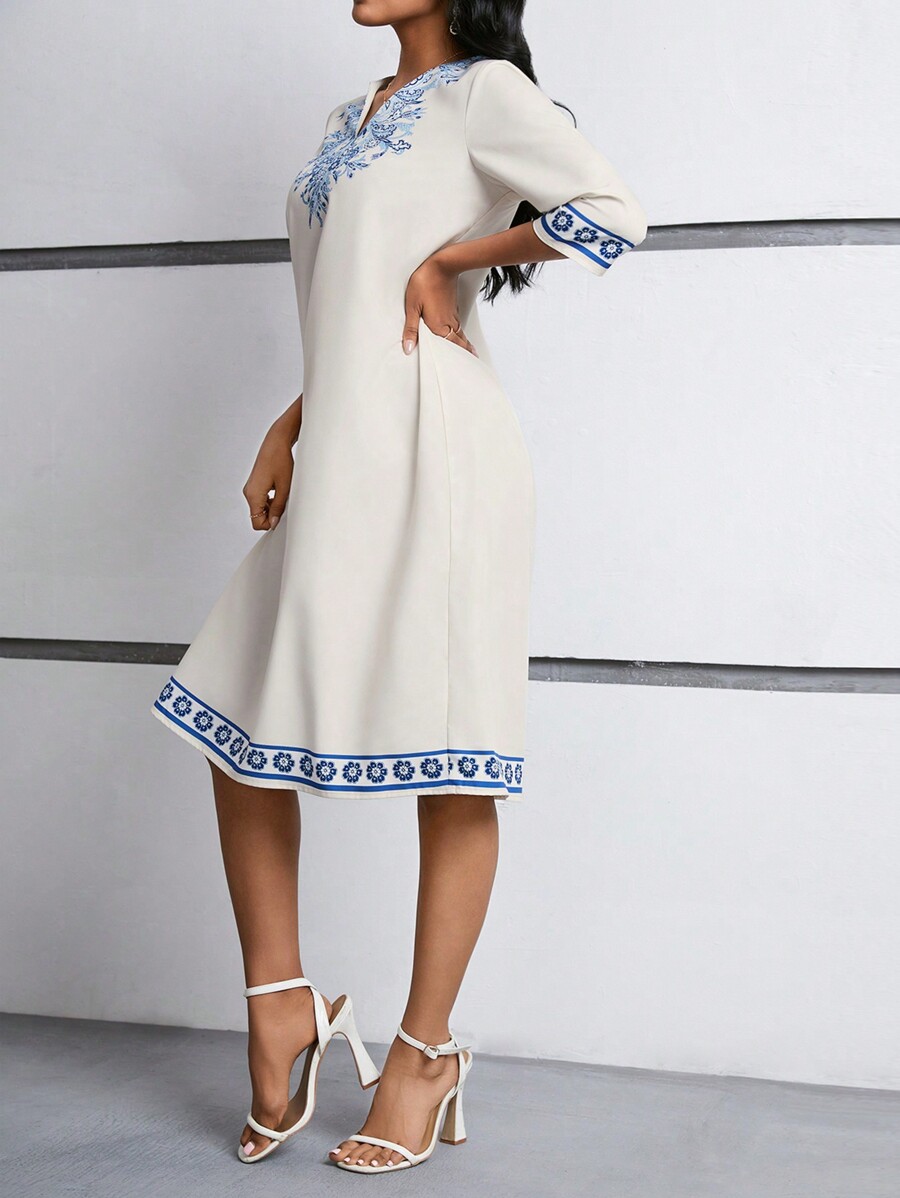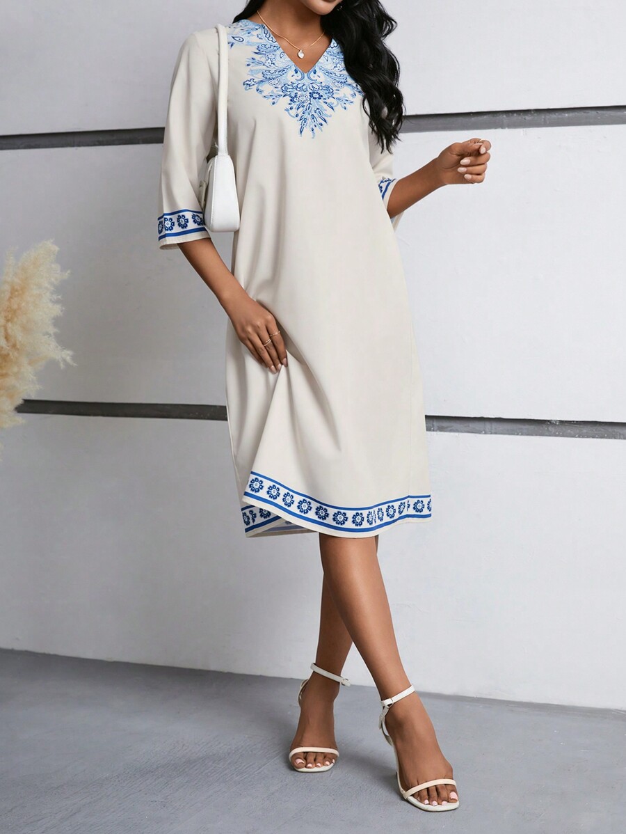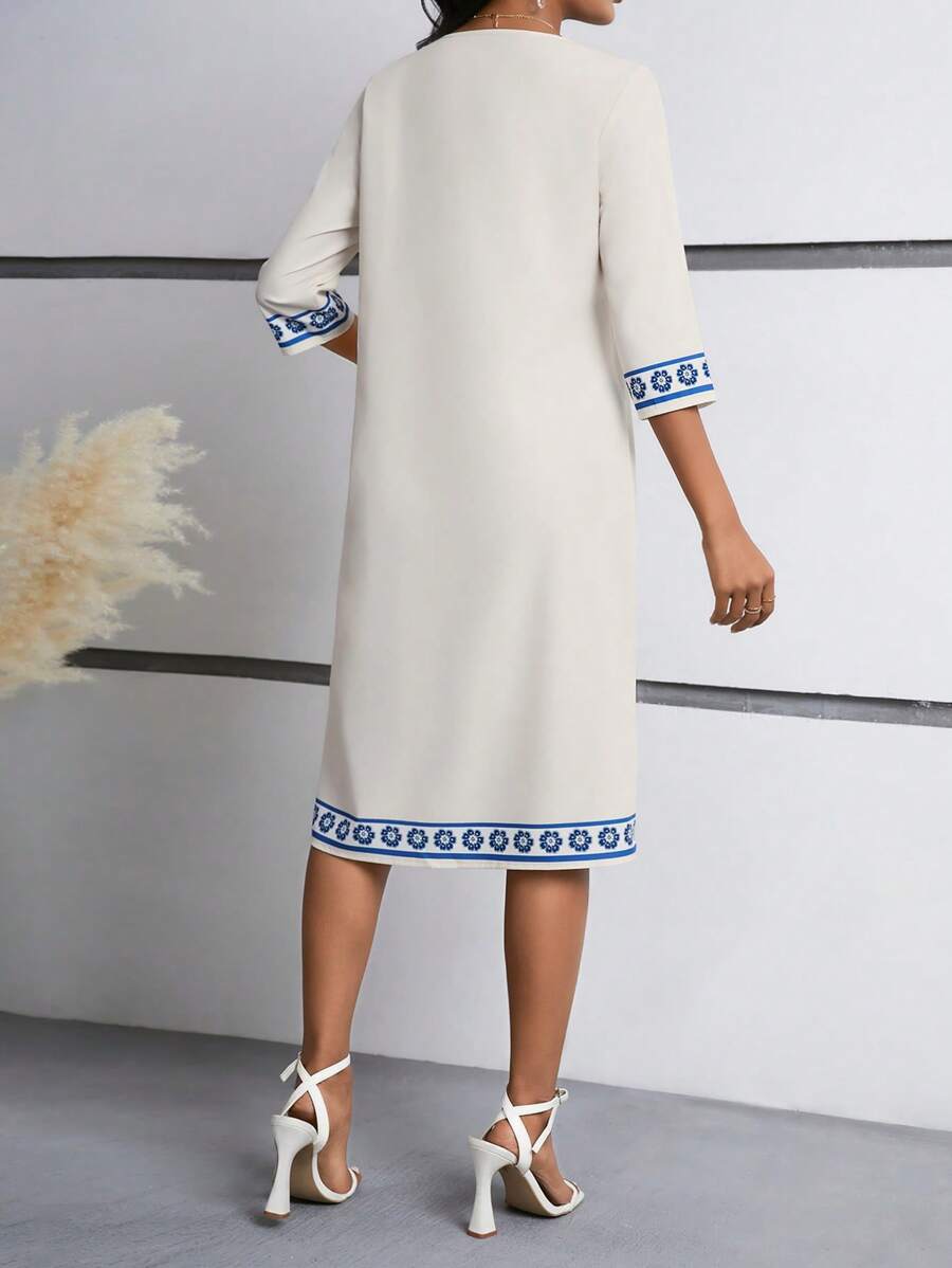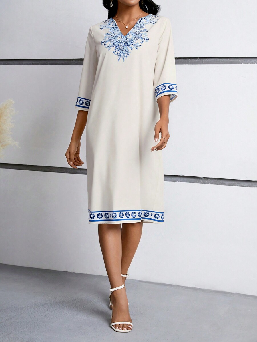 EMERY ROSE Floral Print 3/4 Sleeve Dress For Women Maxi Women Outfit