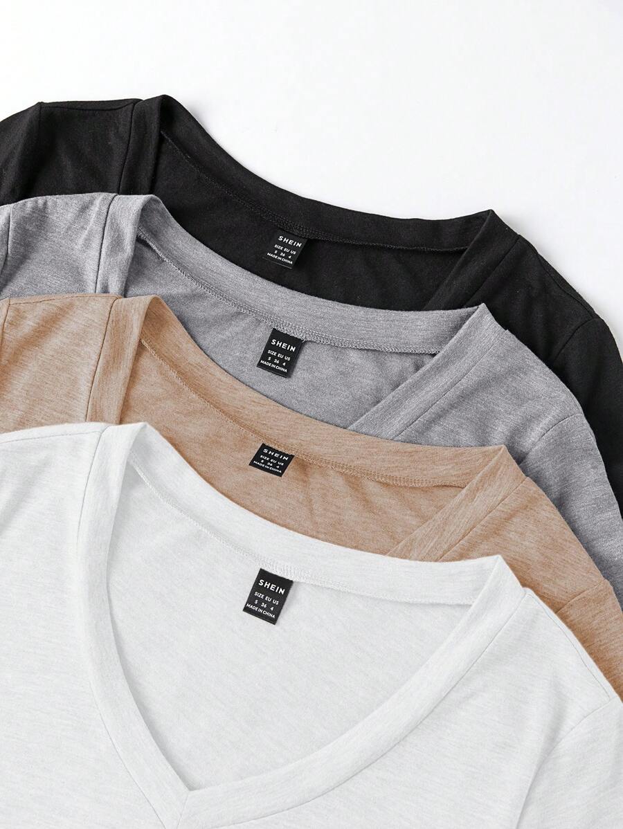 EMERY ROSE Solid Color V-Neck Casual T-Shirt quantity