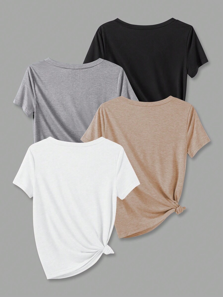 / EMERY ROSE Solid Color V-Neck Casual T-Shirt