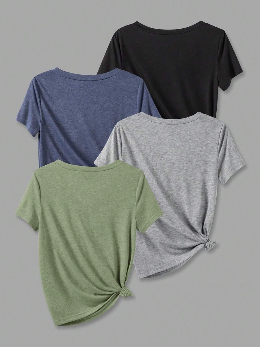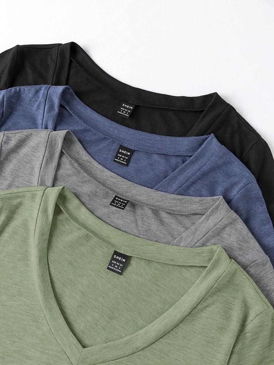 EMERY ROSE Solid Color V-Neck Casual T-Shirt