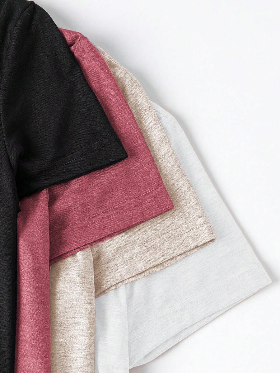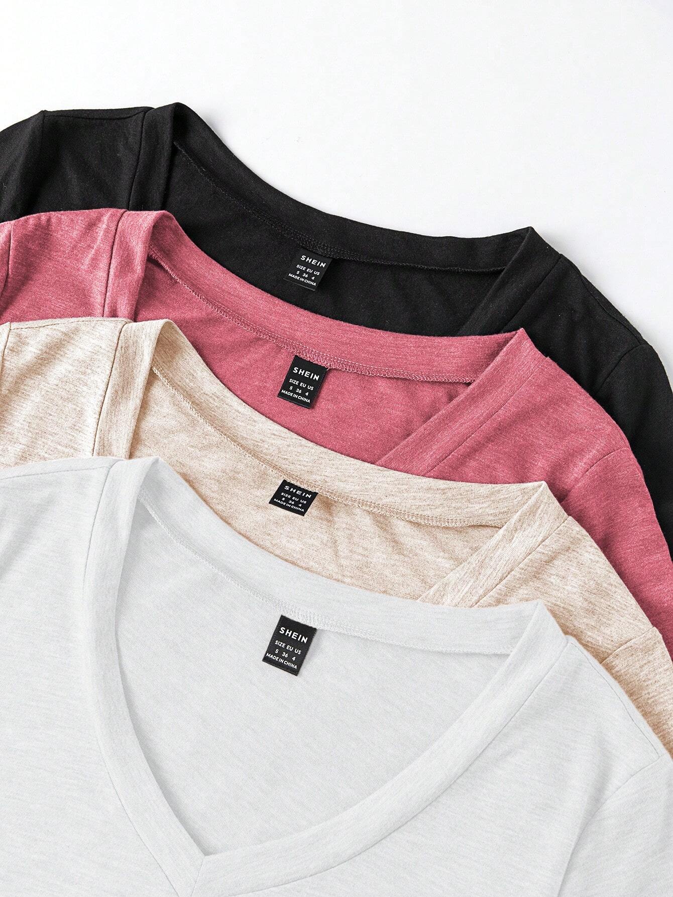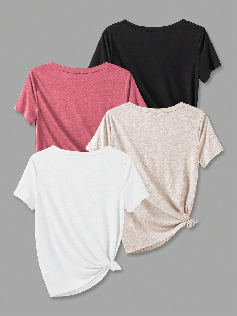 / EMERY ROSE Women Summer 4pcs Plain V-Neck Short Sleeve Casual T-Shirt