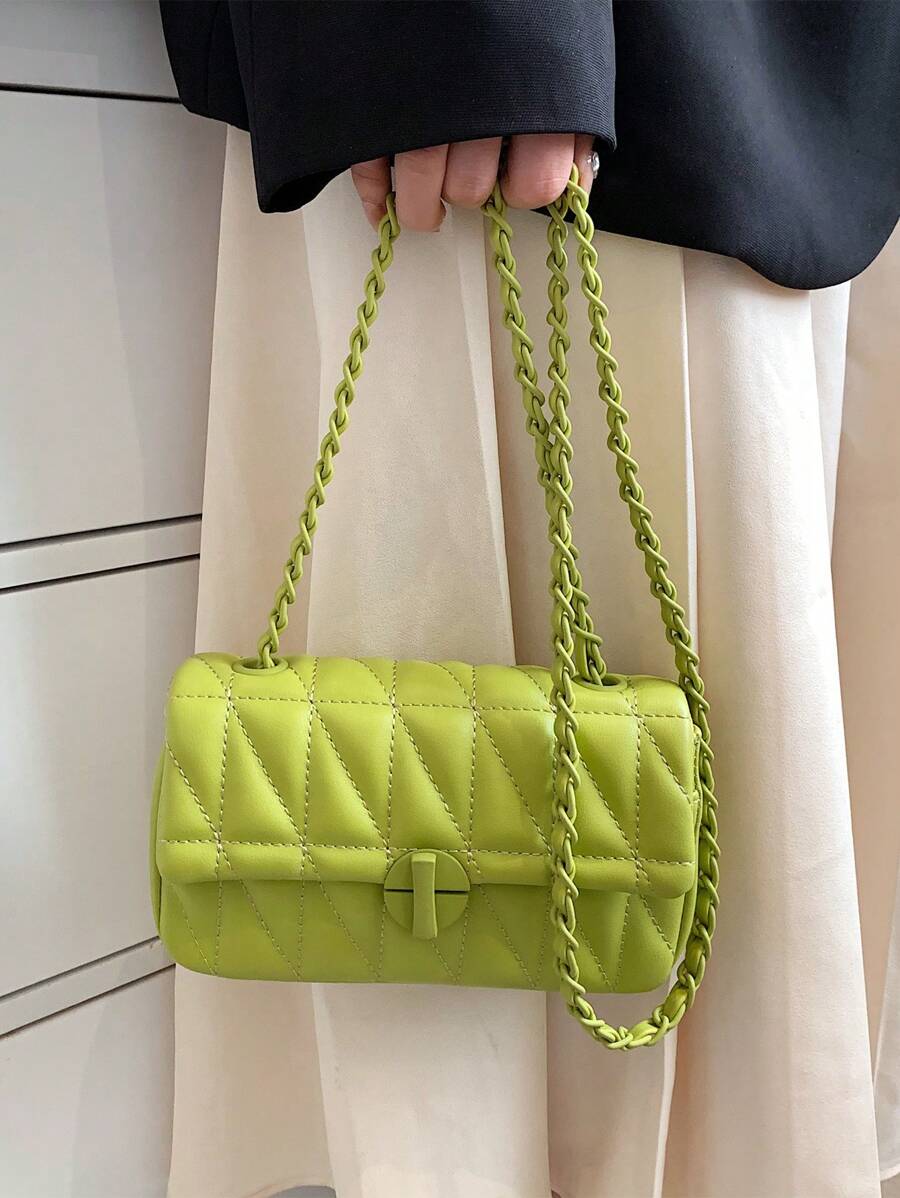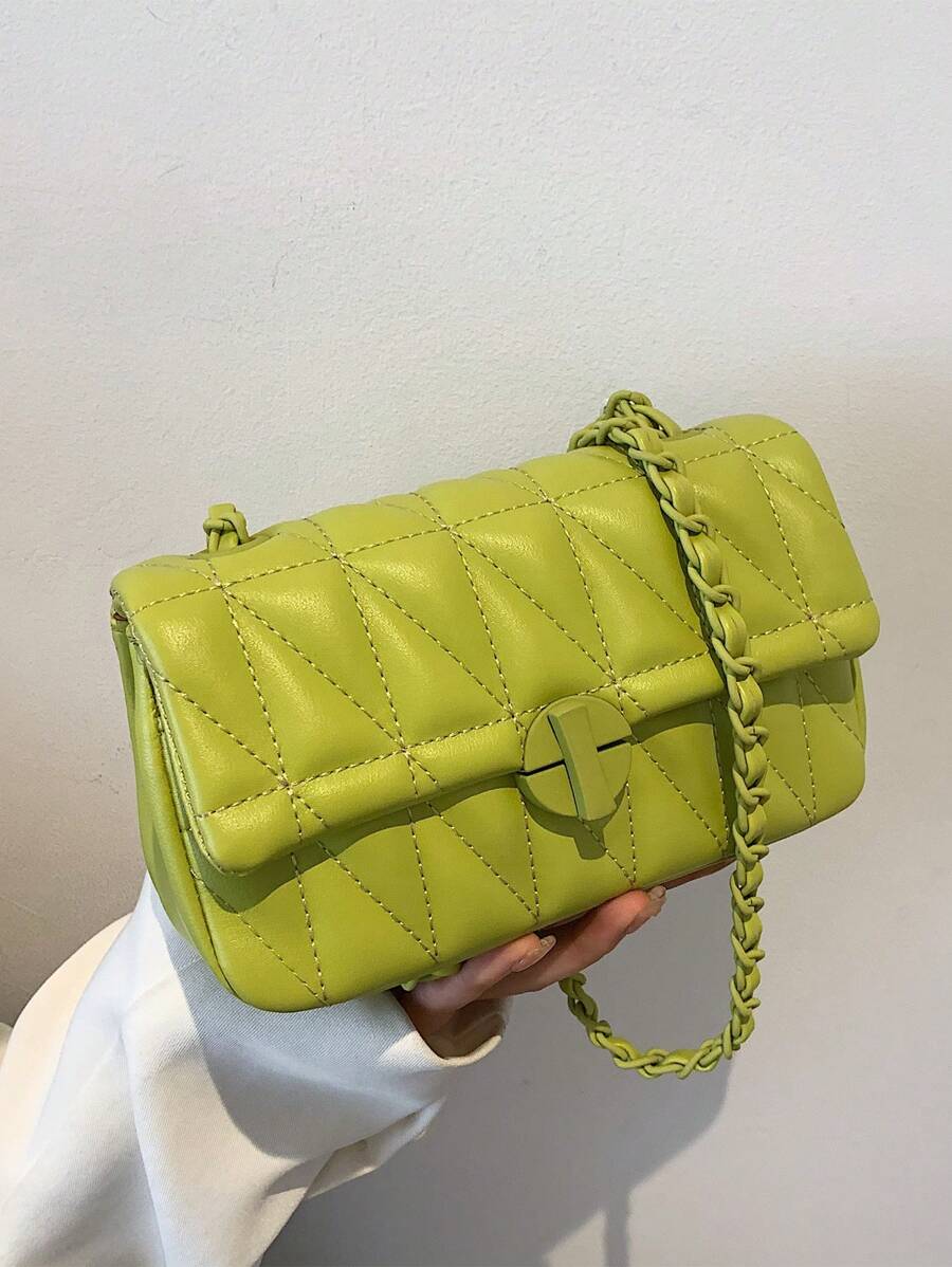 Fashionable Herringbone Stitching Crossbody Bag – Ladies’ Compact PU Material Bag With Secure Twist Lock