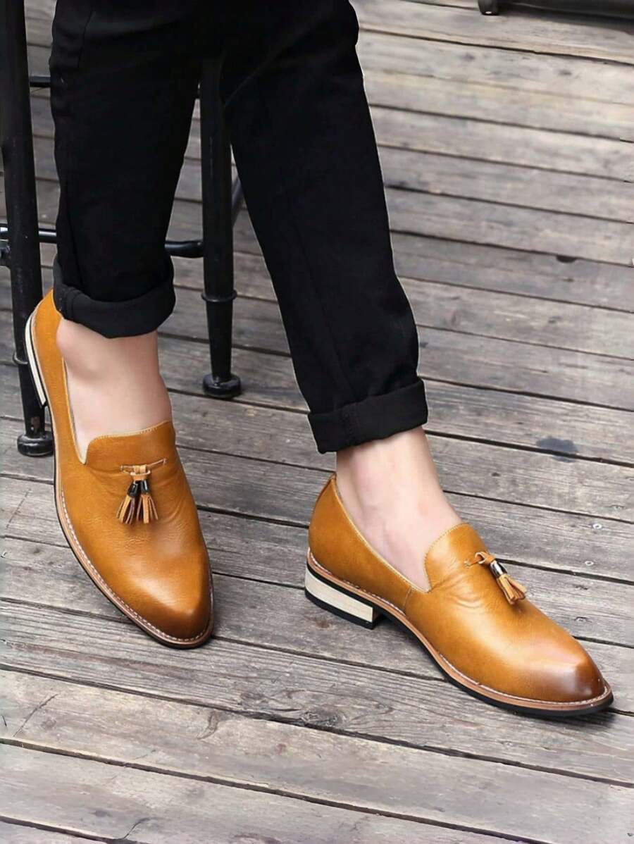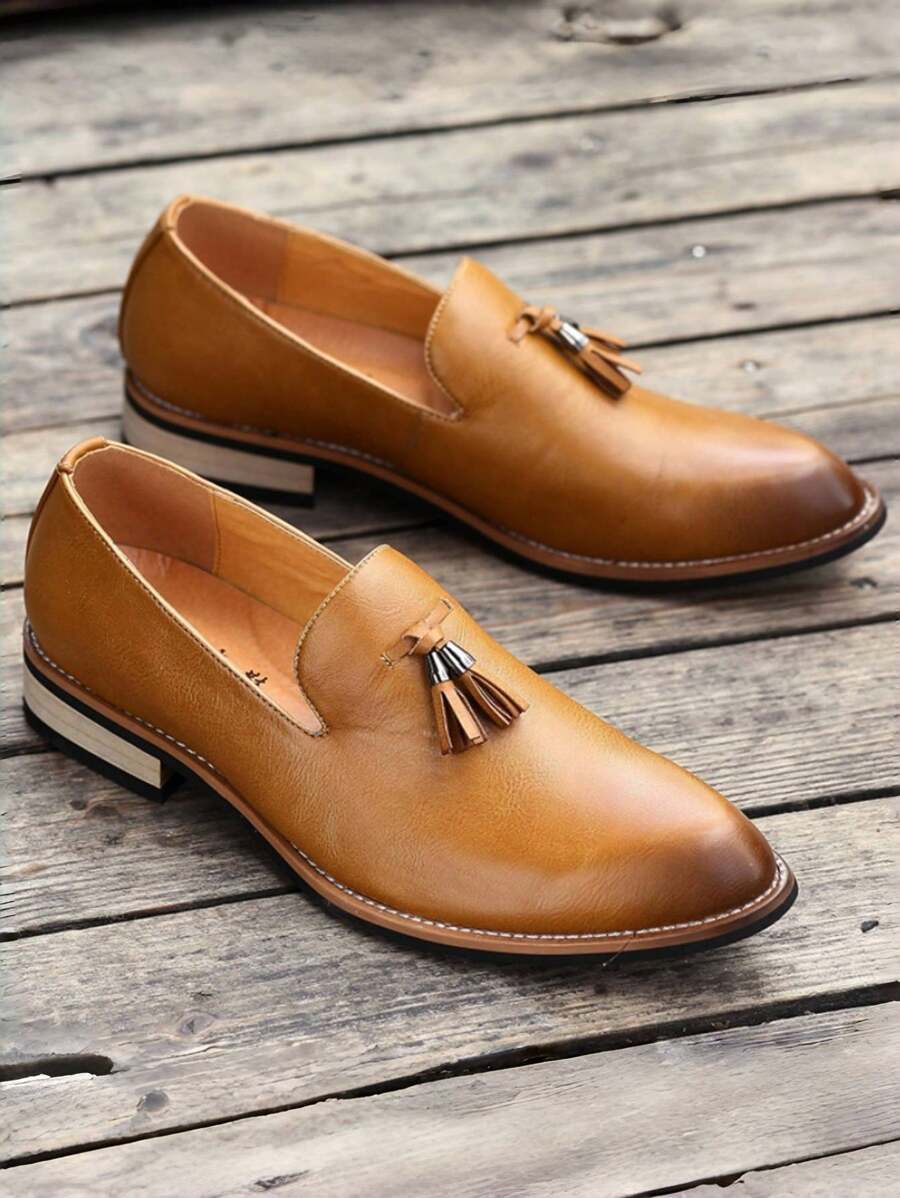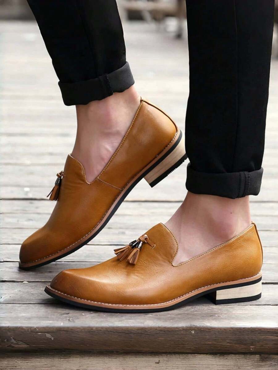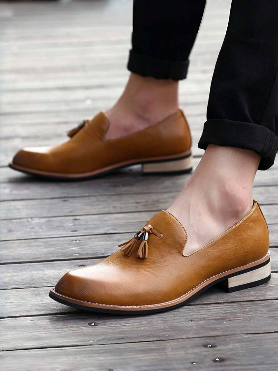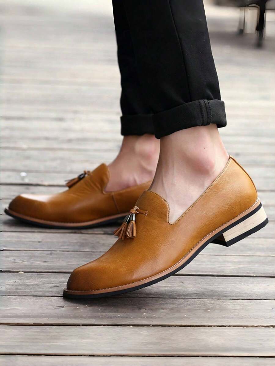 Step into effortless style with these Fashionable Low-Top Plain Color Tassel Formal Dress Shoes. Crafted for modern gentlemen, these shoes combine a refined aesthetic with practical comfort. The sleek low-top design and sophisticated tassel accent make them a standout choice for any wardrobe.