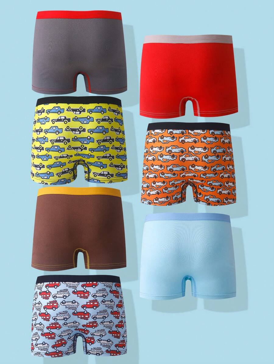 Fashionable Simple Car Printed 6pcs/Set Boys’ Boxer Briefs, Youth