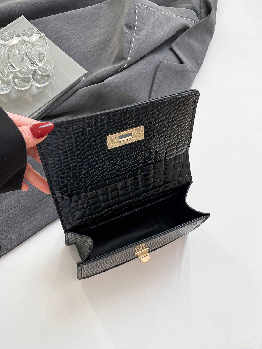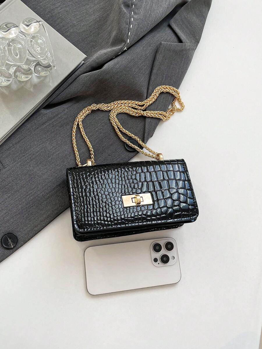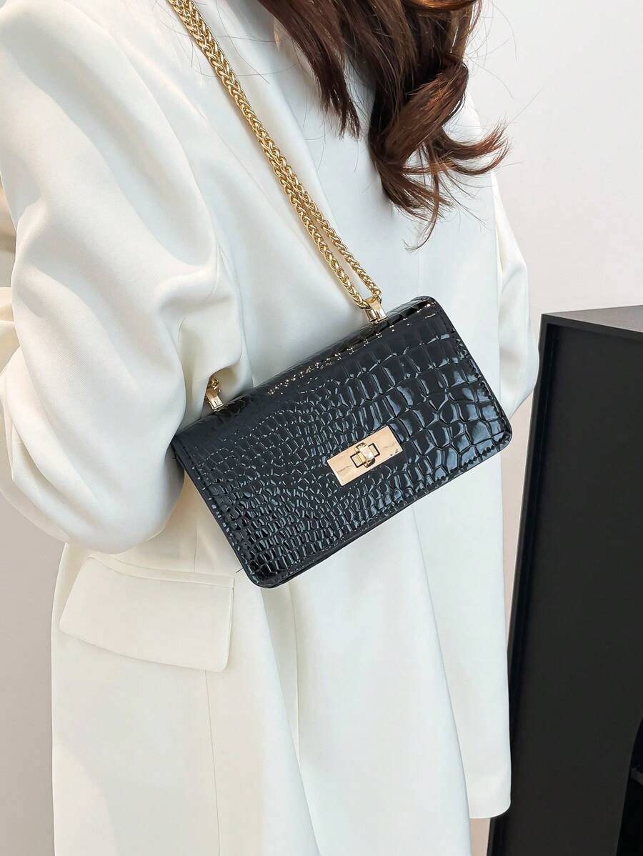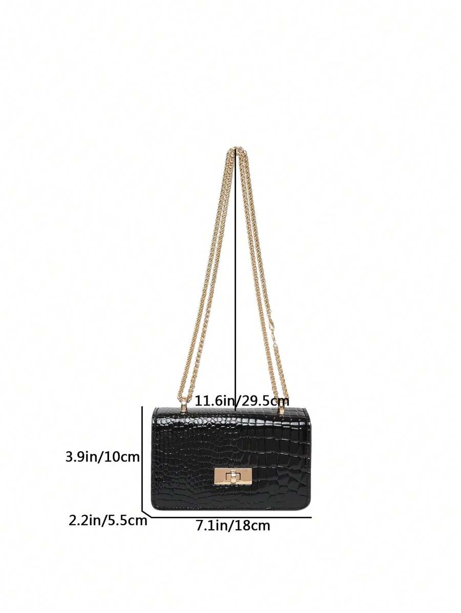 Fashionable Versatile Solid Color New Alligator Texture PU Leather Shoulder Bag, Casual Minimalist Chain Crossbody Square Bag For Women
