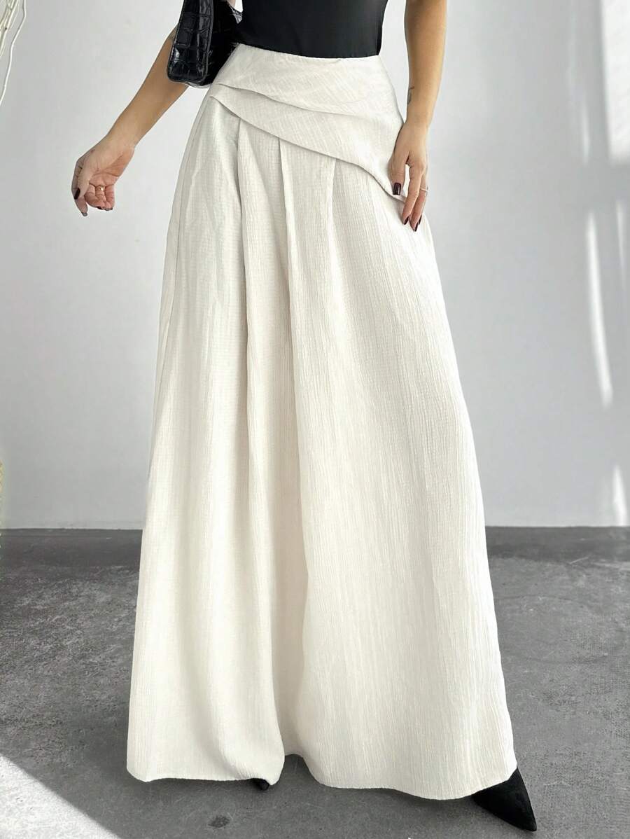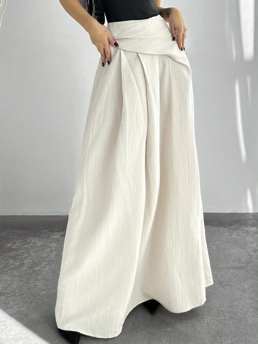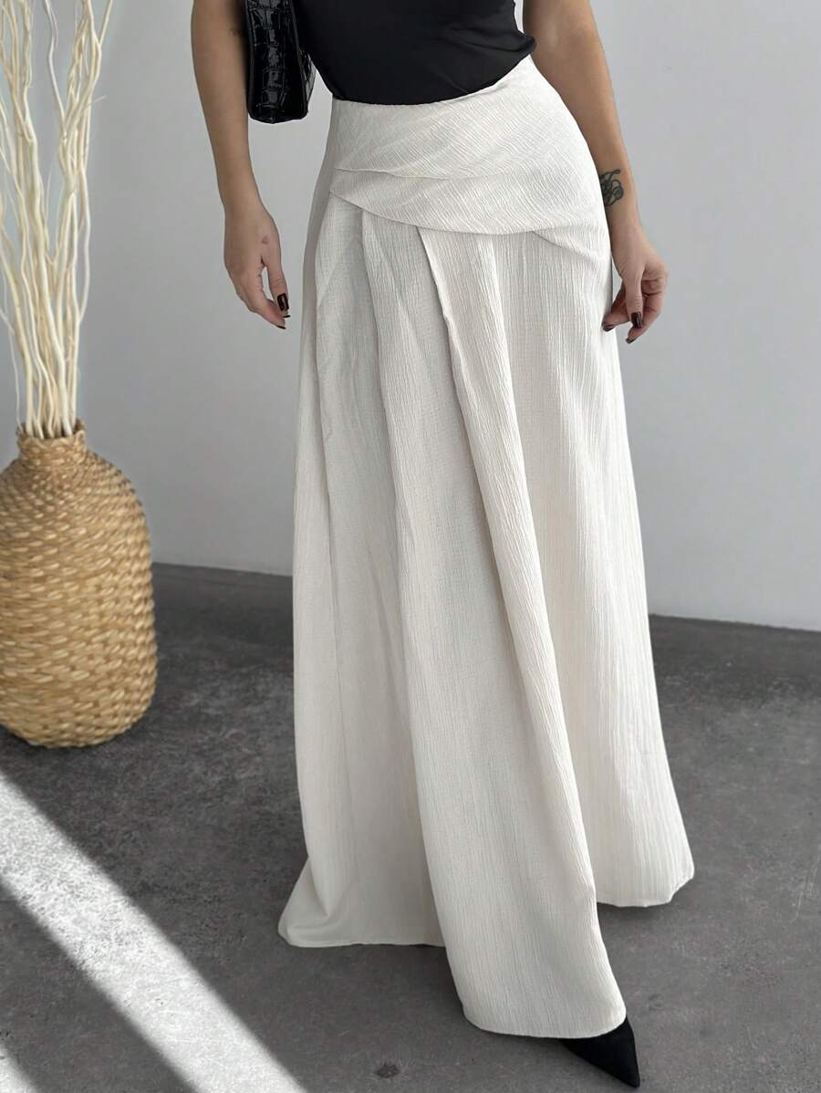 Firerie Autumn/Winter New Elegant High Waist Women’s Pleated A-Line Maxi Skirt, Apricot Color