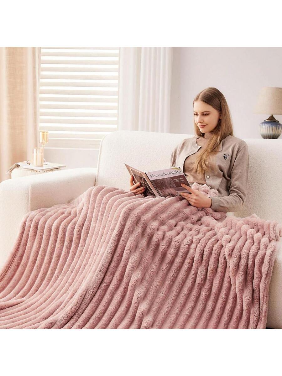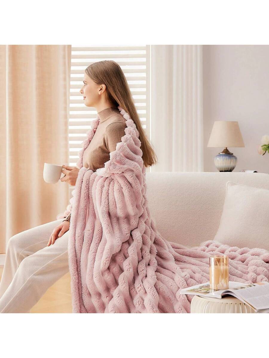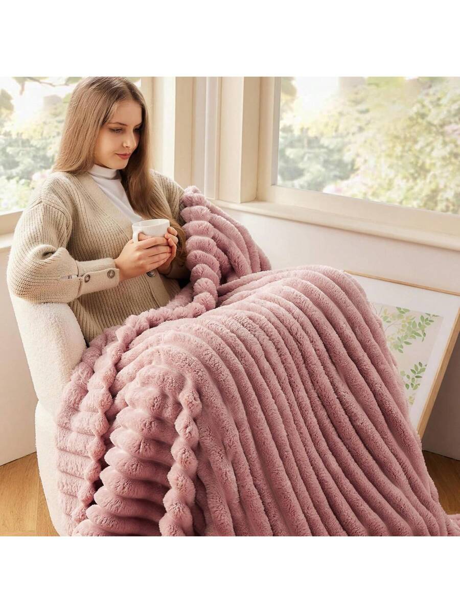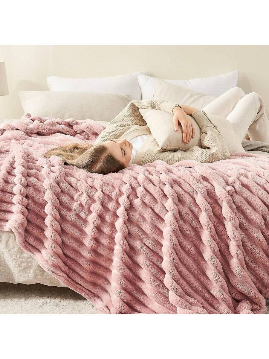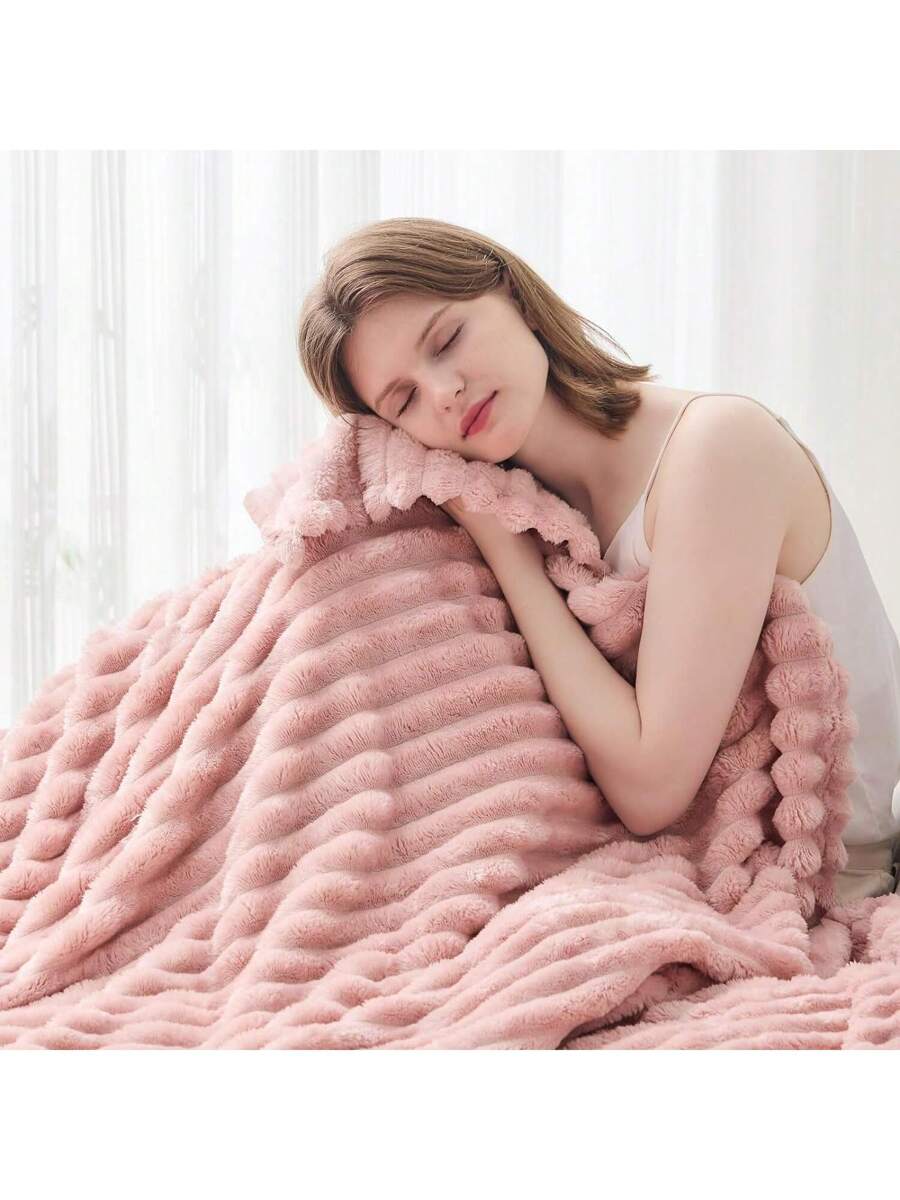 Fleece Throw Blanket For Couch Sofa Or Bed Super Soft Throw Blanket Premium Silky Flannel Fleece 3D Ribbed Jacquard Lightweight Bed Blanket All Season Use