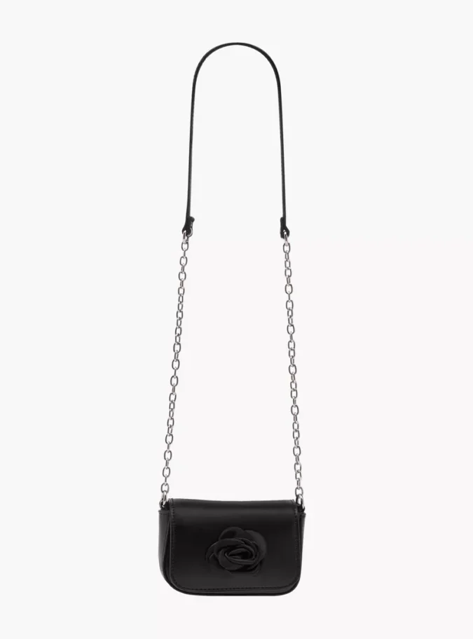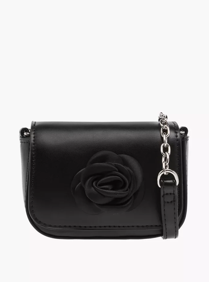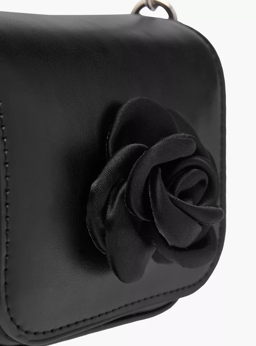 Flora Bella Rose Accent Crossbody Bag with Chain Strap and Flap Closure