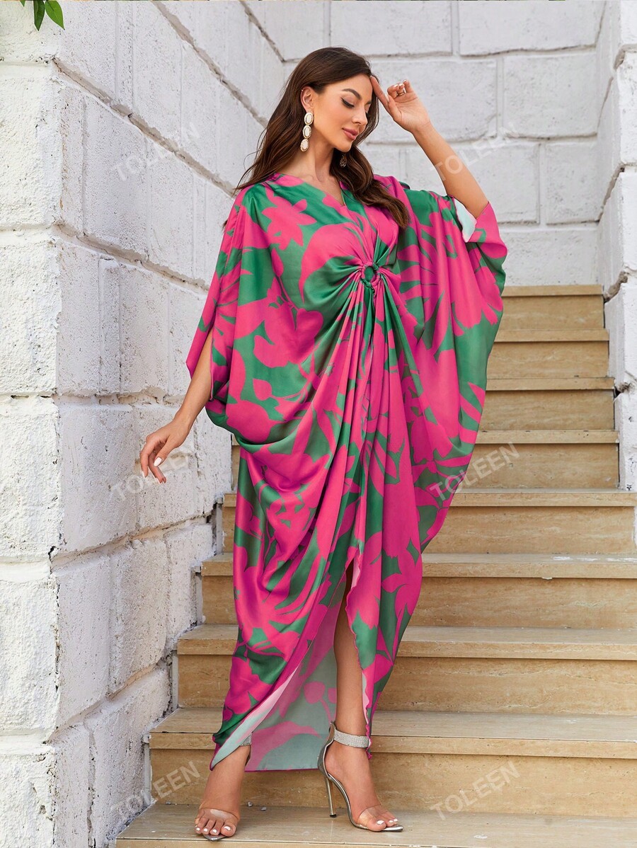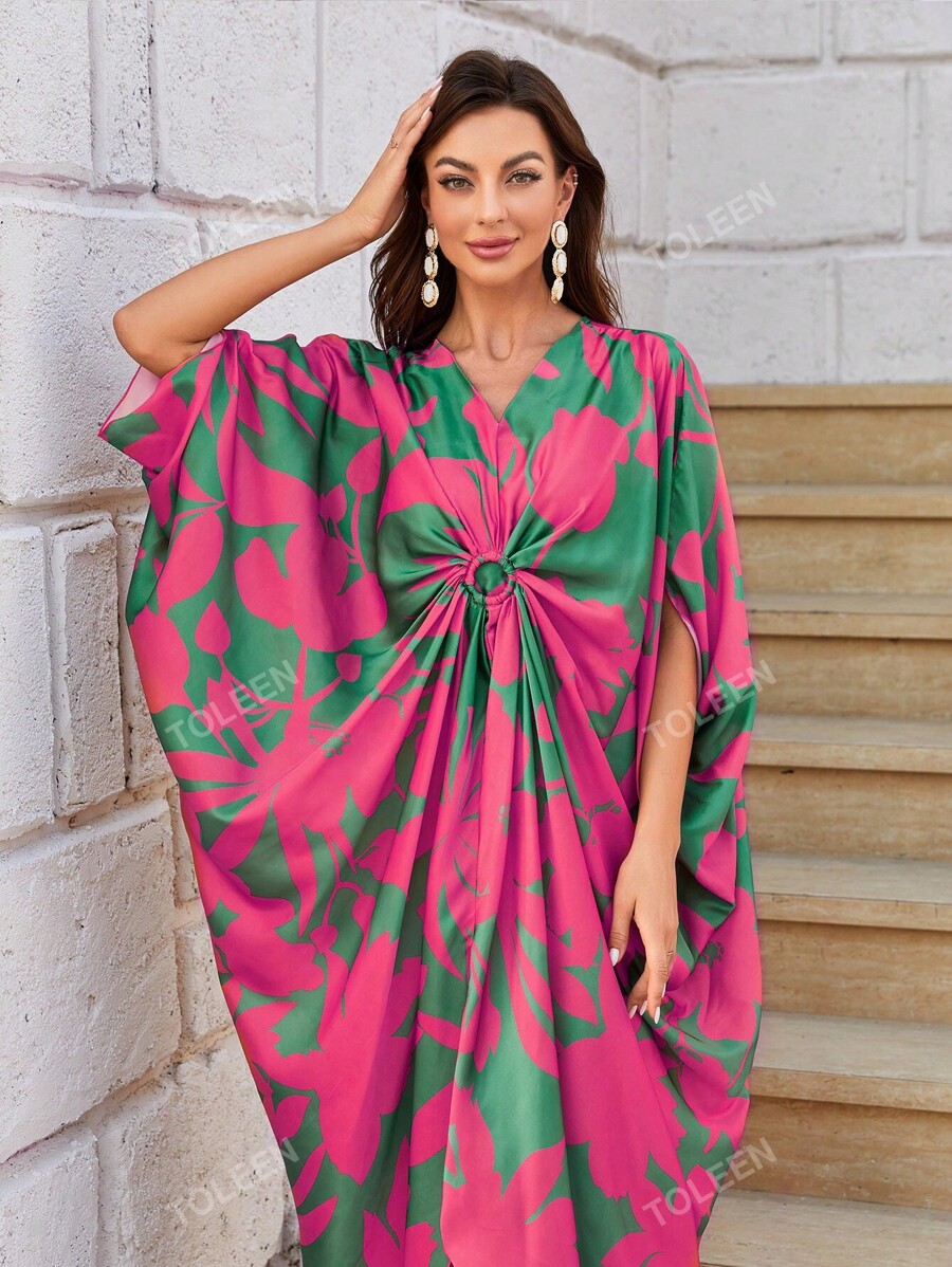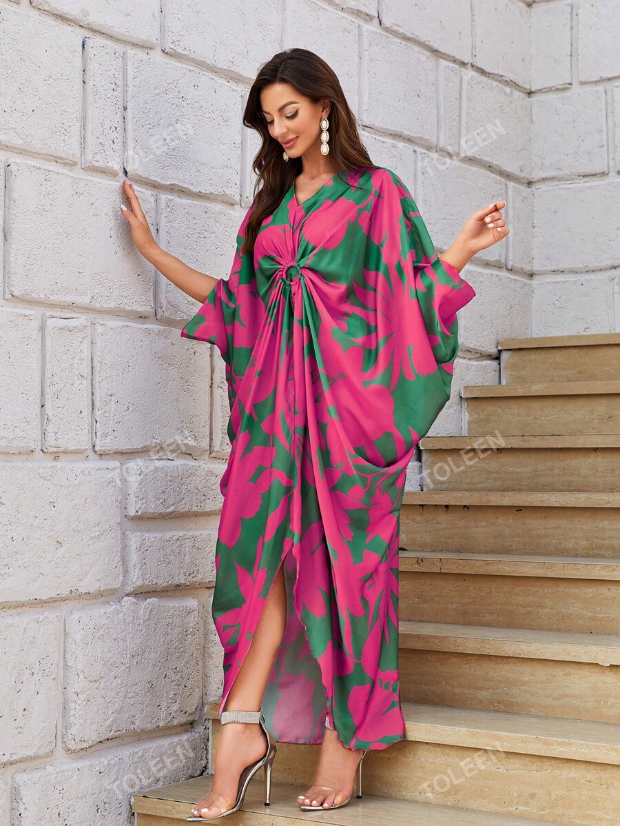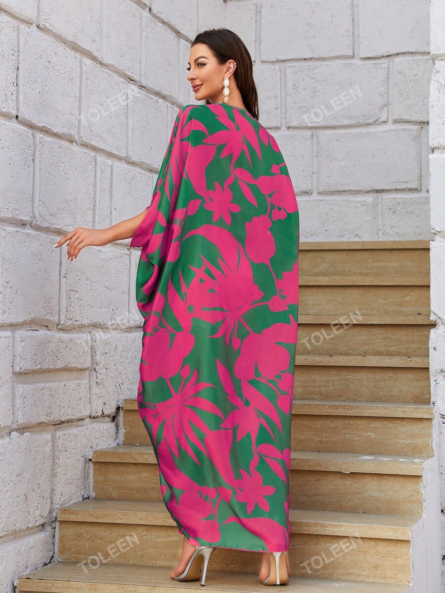 Step into effortless elegance with our Floral Print Batwing Sleeve O-Ring Detail Asymmetrical Hem Modest Long Sleeve Dress. Designed for comfort and style, this dress features a soft, flowing silhouette enhanced by its batwing sleeves and O-ring waist detail, creating a flattering yet relaxed fit. The modest long sleeves and asymmetrical hem add a contemporary touch, while the vibrant floral print exudes femininity and grace. Whether you’re attending a brunch, special event, or an evening gathering, this dress offers versatility and charm. Pair it with heels for an elegant look or sandals for a more casual vibe.