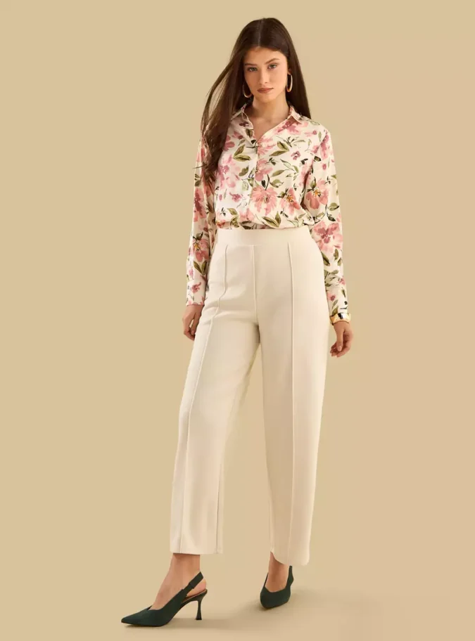 Pointed or Rounded Collar: A classic shirt collar that adds structure to the soft silhouette.