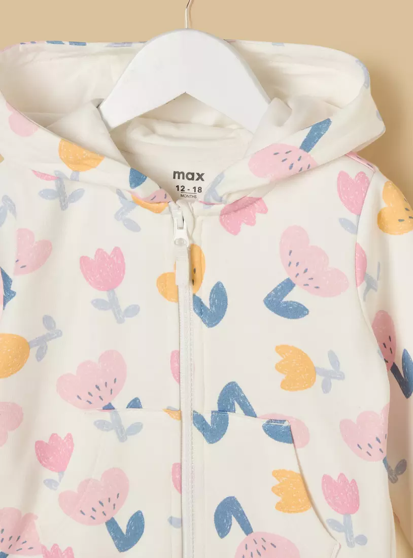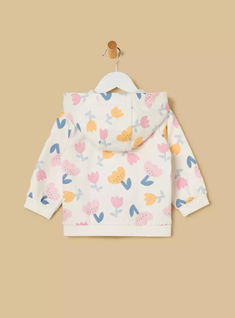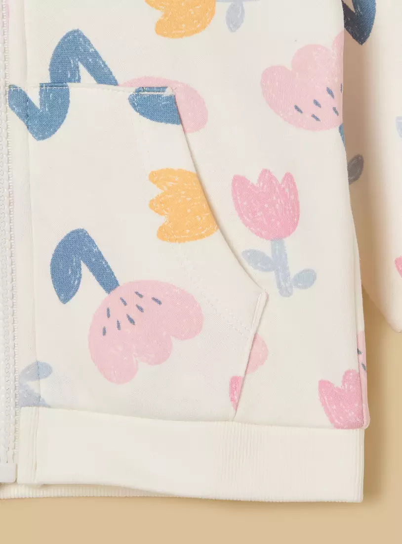 Floral Print Zip Through Hoodie