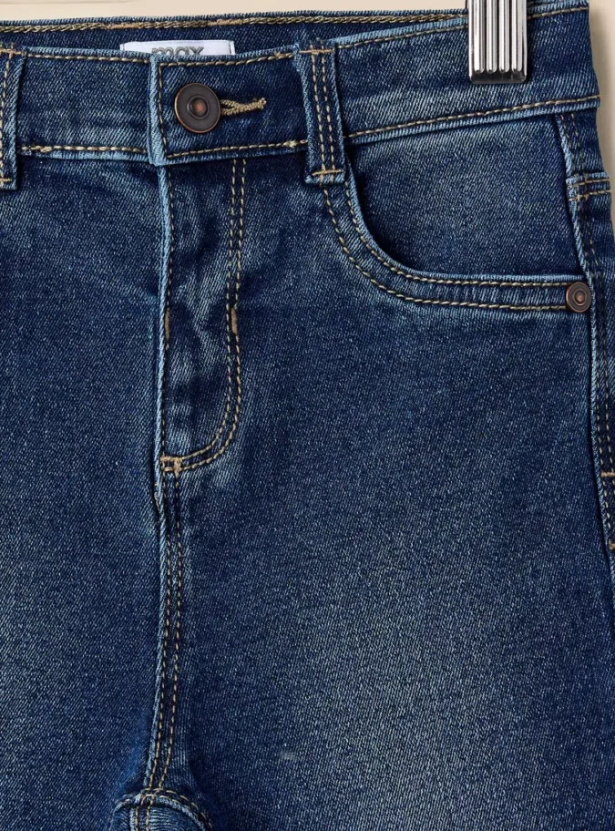 • Soft, Durable Denim: Comfortable cotton-blend fabric that holds up to active wear.