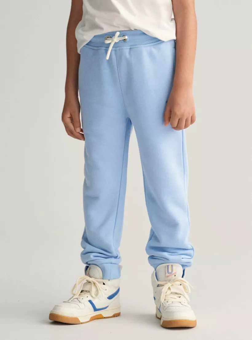 The GANT Solid Elasticated Joggers combine modern streetwear style with everyday comfort. Designed from premium cotton blends, these joggers feature a soft elasticated waistband with adjustable drawstrings for a perfect fit. The minimalist solid design makes them versatile enough to pair with casual tees, hoodies, or polos, while the tapered fit ensures a sleek and tailored look. Perfect for lounging, workouts, or casual outings, GANT joggers deliver both comfort and sophistication.