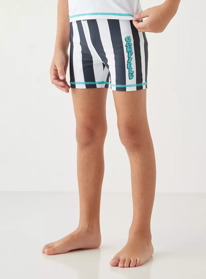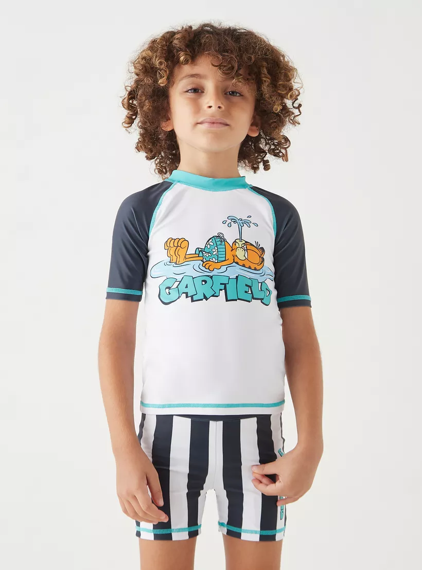 Your little boy will be the coolest kid at the beach or pool in this stylish and comfortable Garfield print swim set. This set includes a T-shirt and trunk set, made from durable and quick-drying polyester to keep your little one feeling cool and comfortable all day long. Featuring a fun print, this set is sure to make a splash!