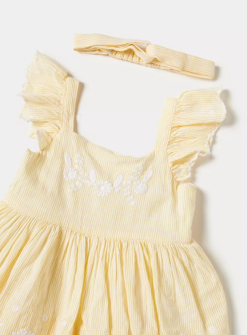 Giggles Floral Embroidered Sleeveless A-line Dress and Hairband Set