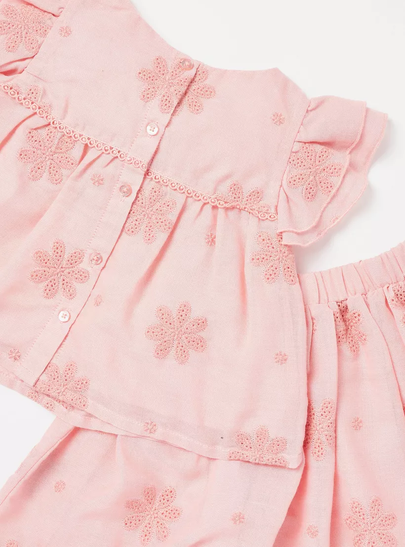 Giggles Schiffli Button Through Top and Skirt Set