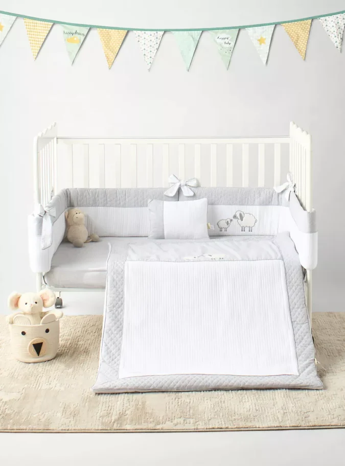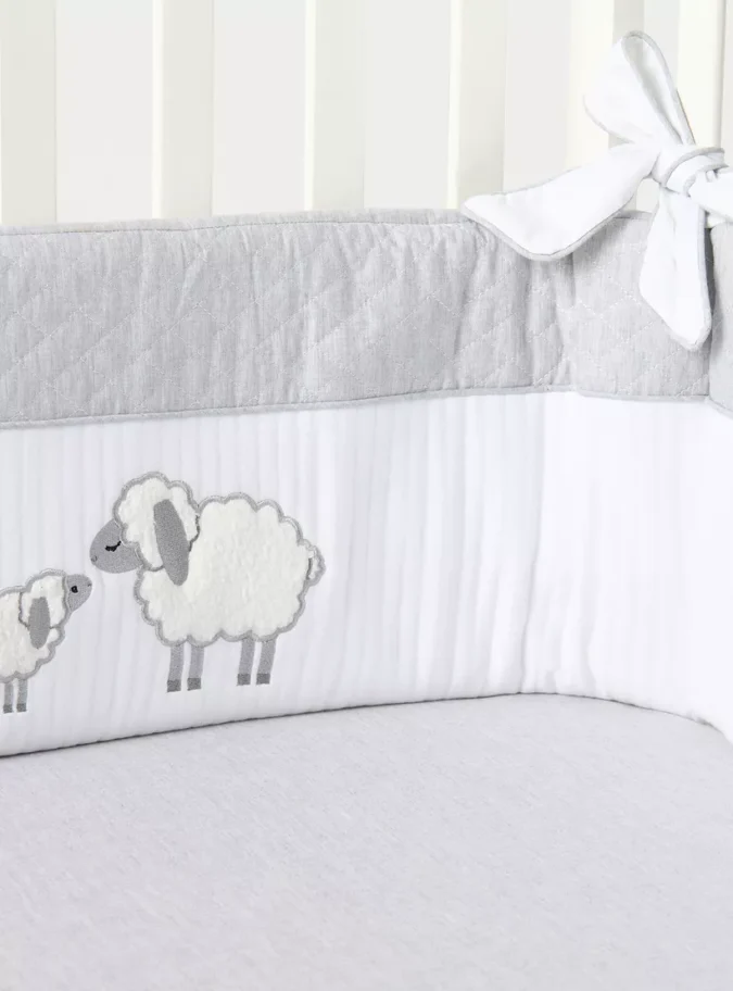 Adorable 3D Sheep Applique: Features charming, textured sheep appliques that add a playful and tactile visual element to the crib.