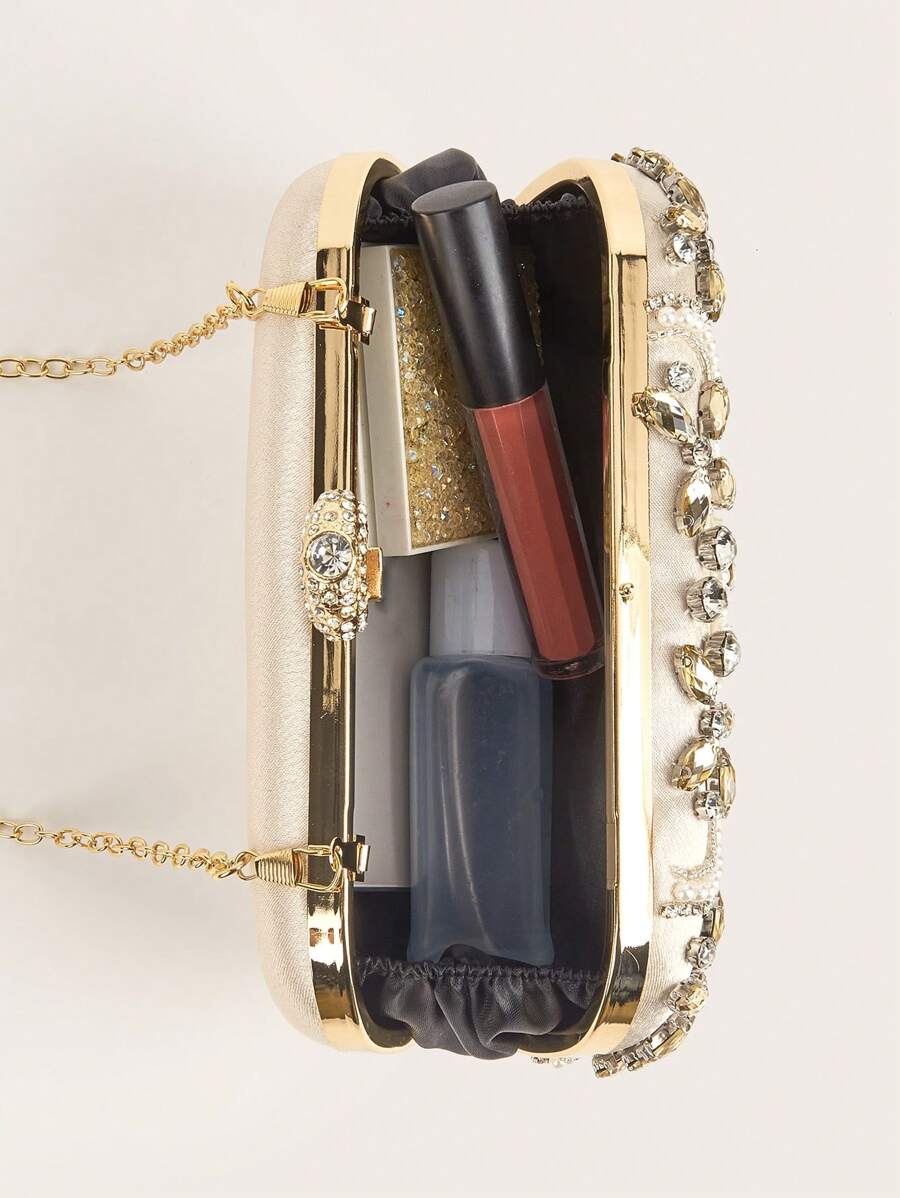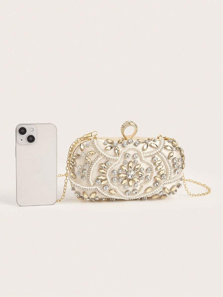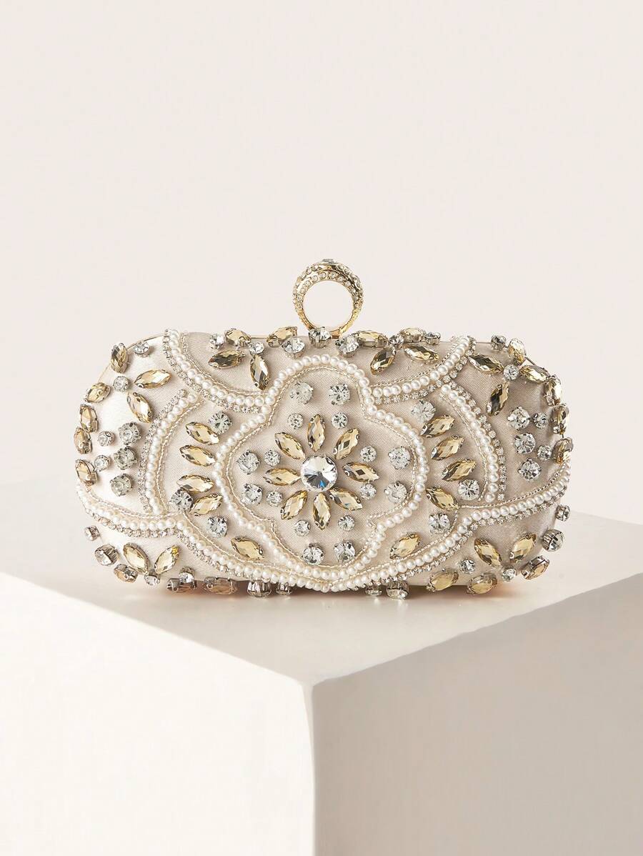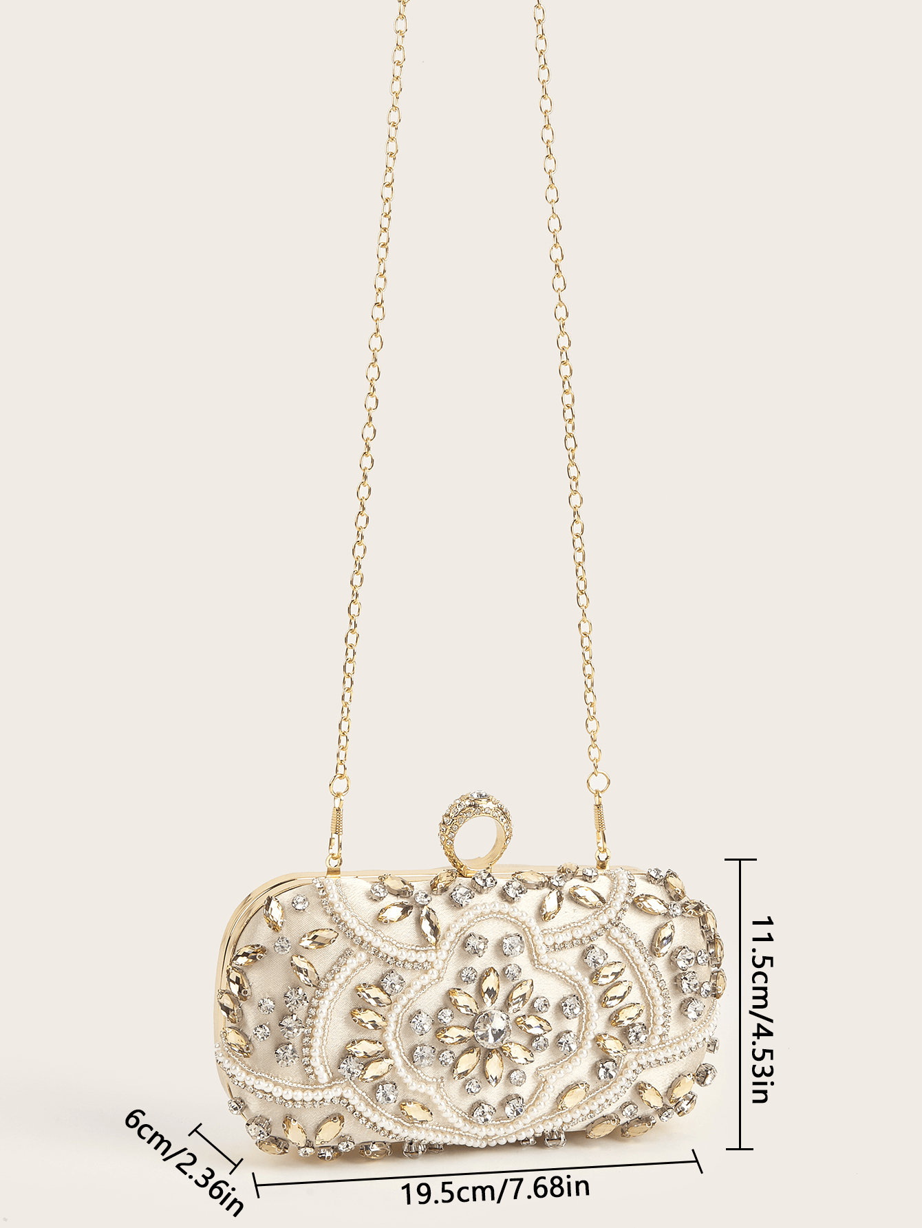 Accented with faux pearls and a glimmering finish, it combines elegance with statement style. Compact yet spacious enough for your essentials, it’s ideal for brides, party girls, or as a standout gift for the fashionable woman in your life.