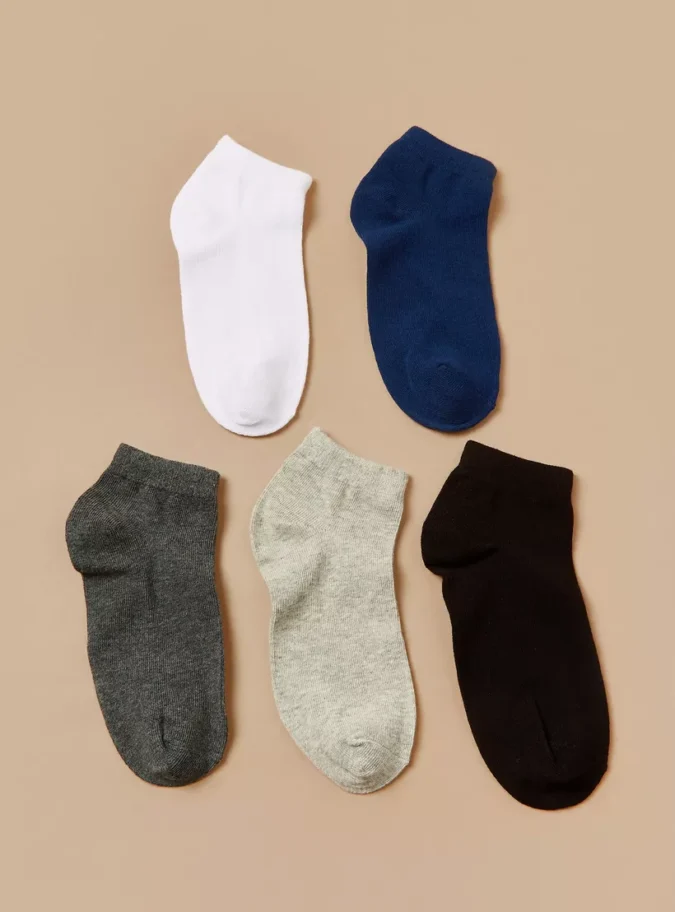 Gloo Solid Ankle Length Socks with Cuffed Hem – Set of 5