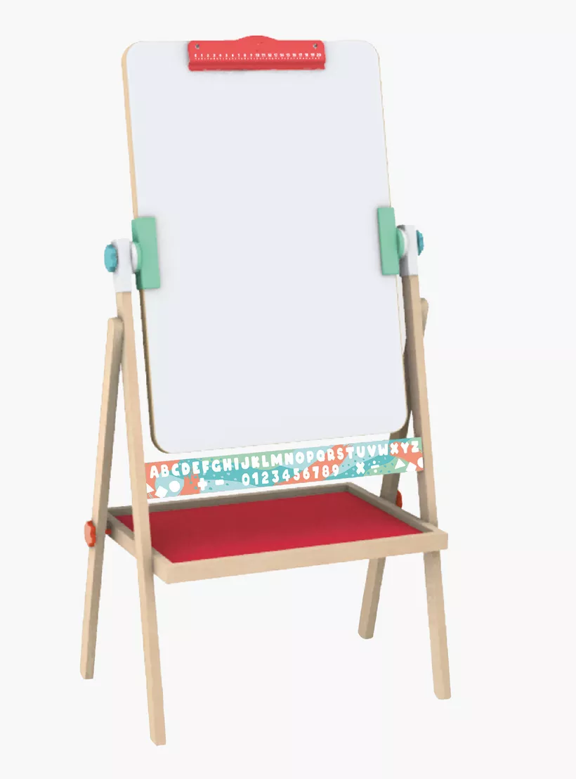 • Double-Sided Design: One side is a traditional chalkboard, the other a magnetic whiteboard, perfect for versatile learning and play.