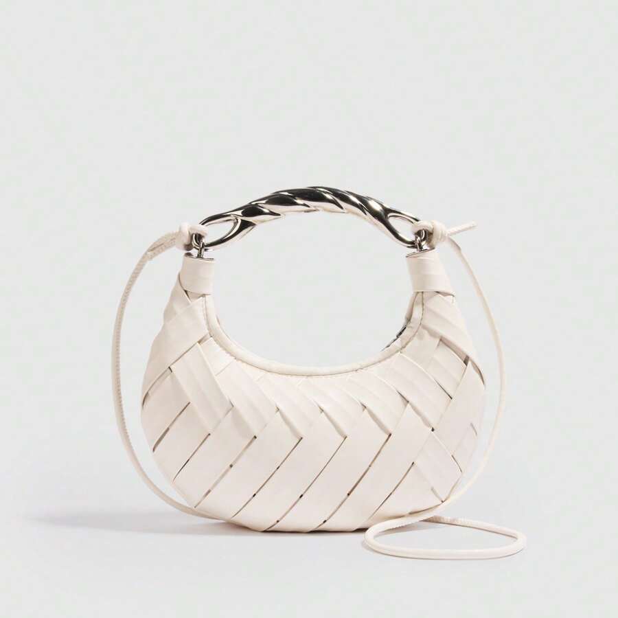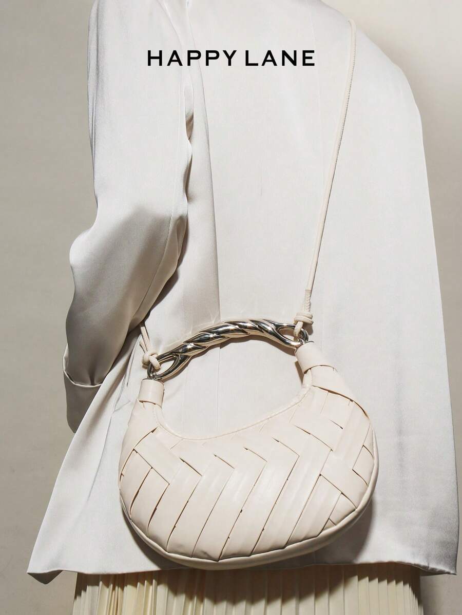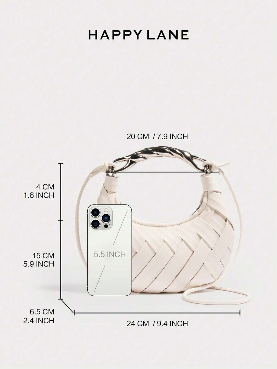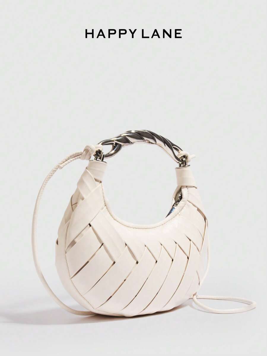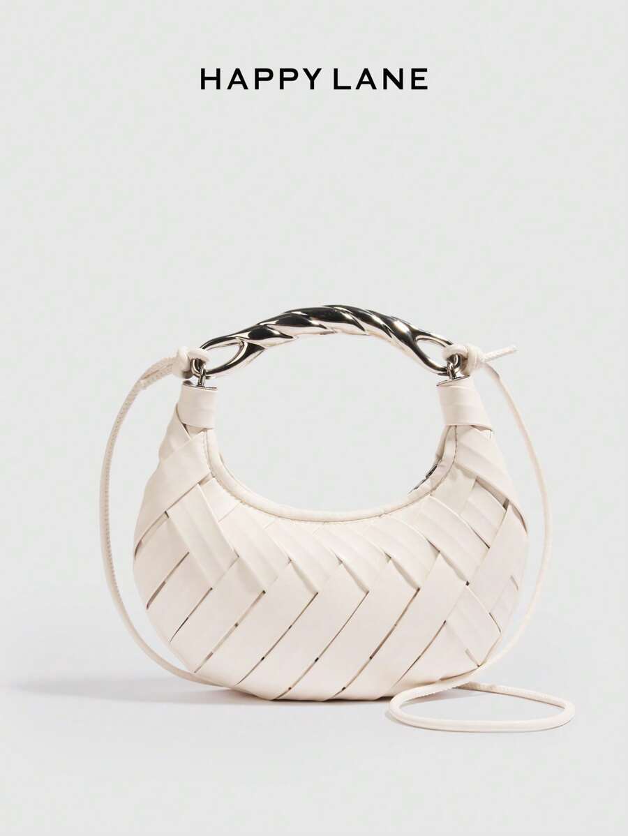 HAPPY LANE 1pc Elegant Crescent-Shaped Handbag, Handmade Dumpling Design, Twisted Metal Hardware Tote Bag, PU Vegan Leather Versatile Zip Shoulder Bag Suitable For Girls, Travel & Daily Use