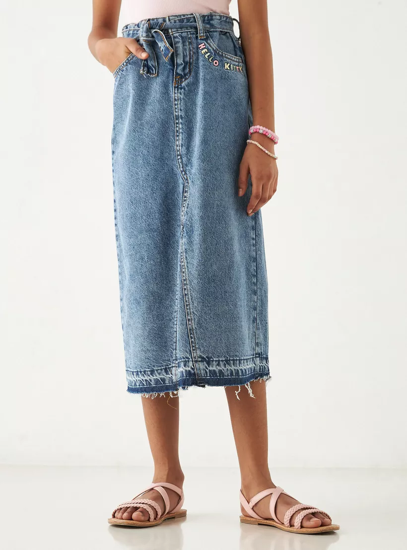 Hello Kitty Embroidered Denim Skirt with Tie-Up Detail