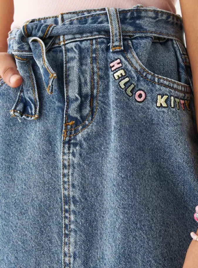 Hello Kitty Embroidered Denim Skirt with Tie-Up Detail