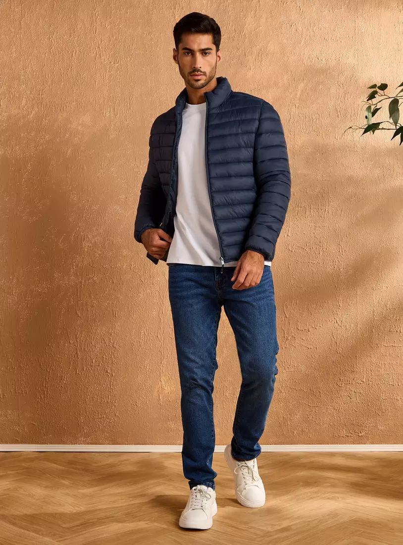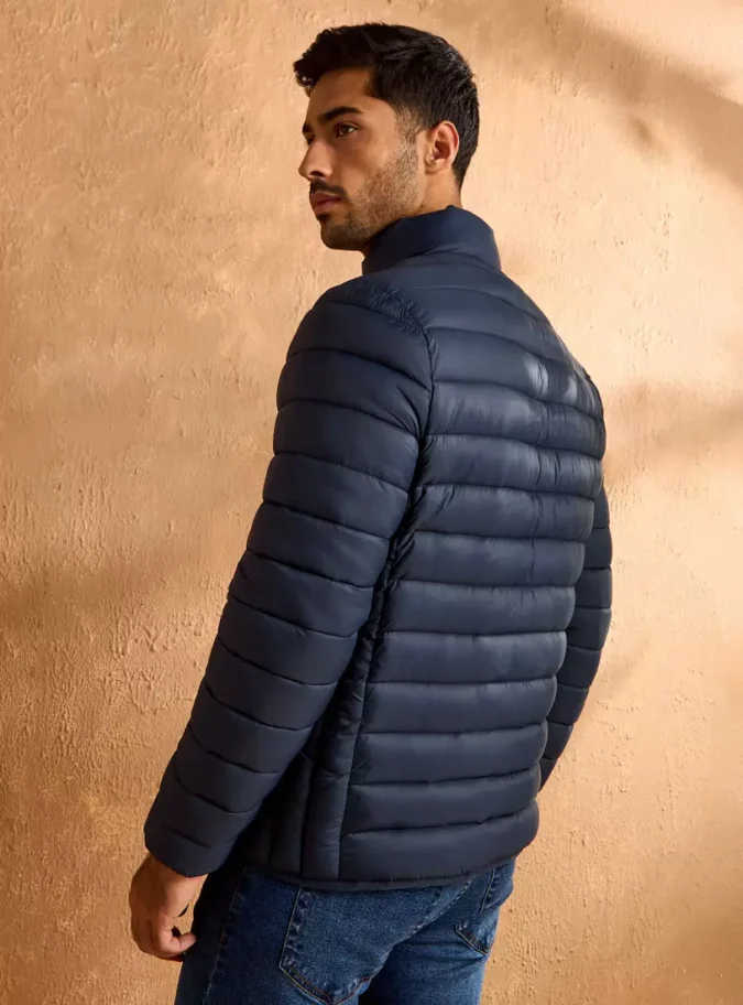 Protective High Neck: Extended collar design for added warmth and wind protection
