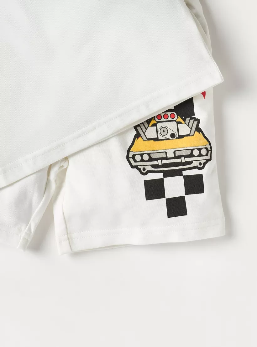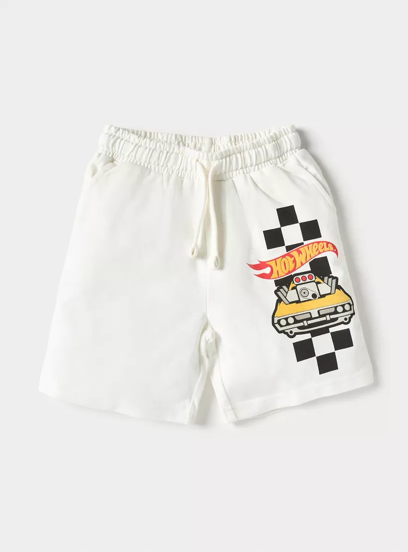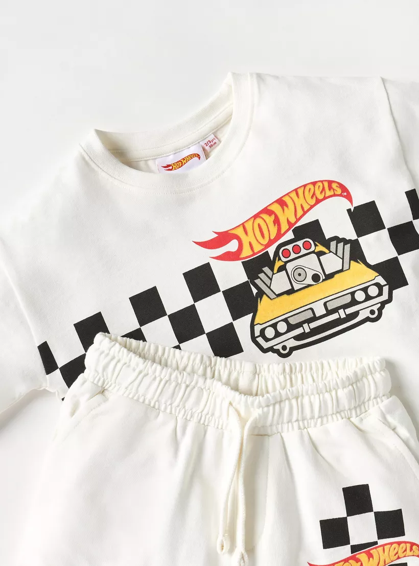 Hot Wheels Print Crew Neck T-shirt and Drawstring Closure Shorts Set