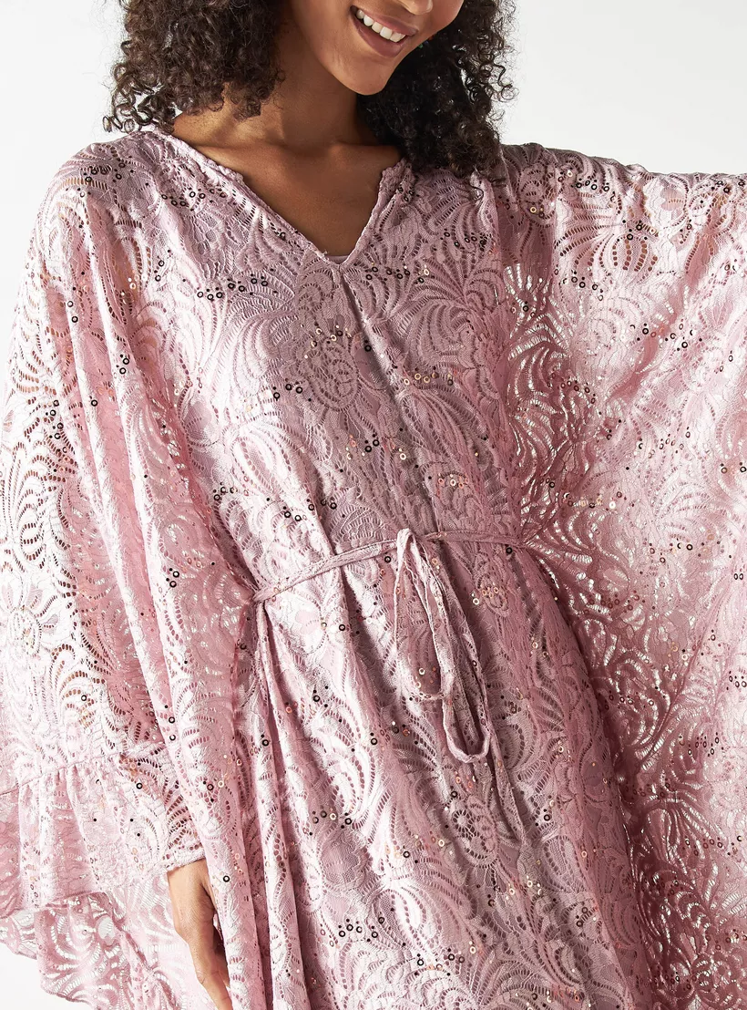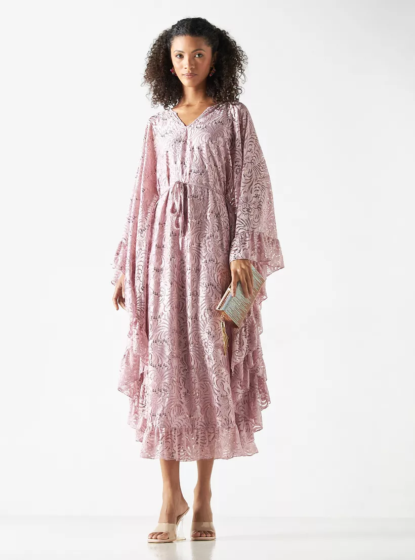 Iconic All-Over Embellished Kaftan Dress with Tie-Up Belt