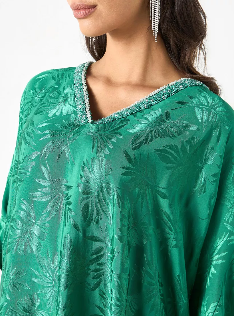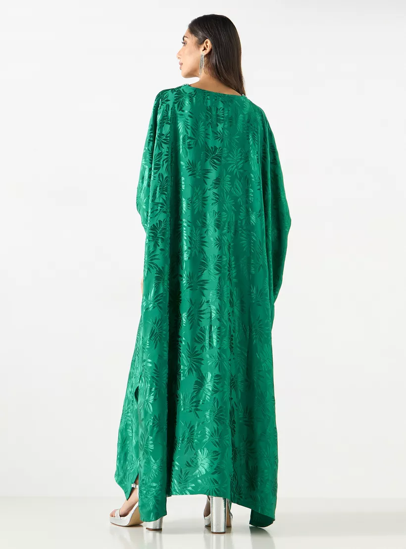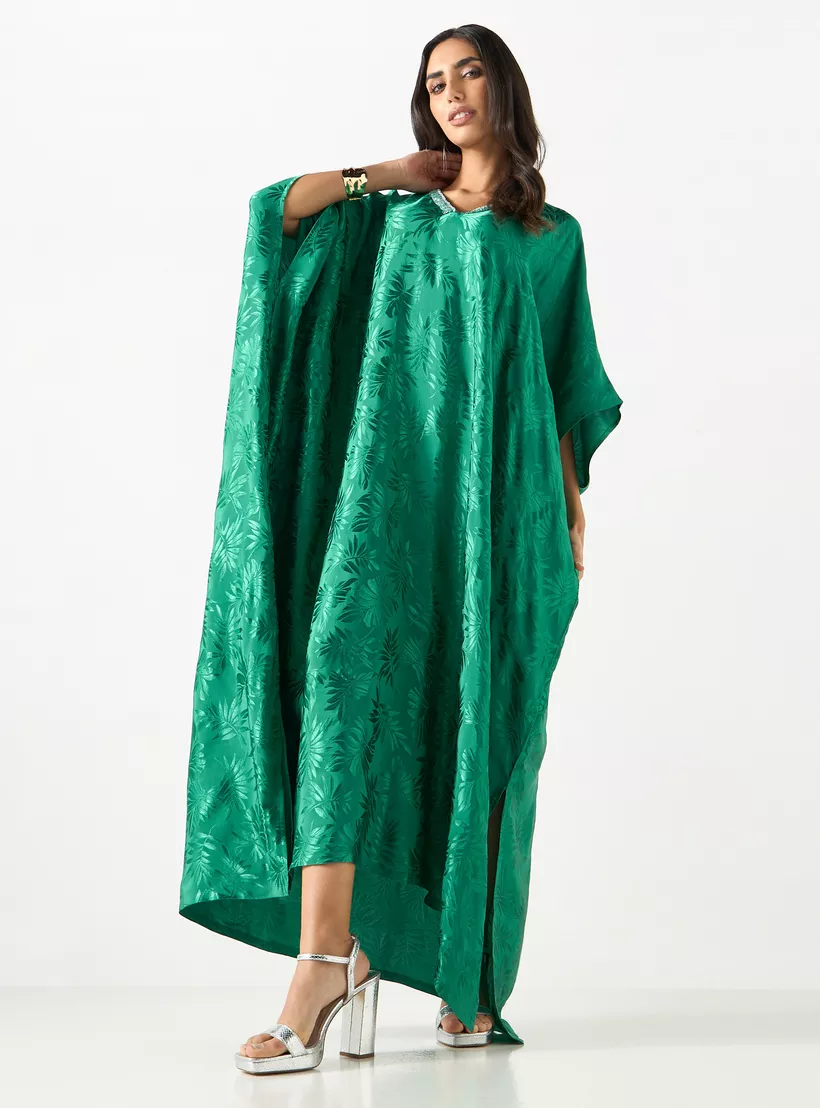 Iconic All-Over Leaf Detail Kaftan Dress with V-neck