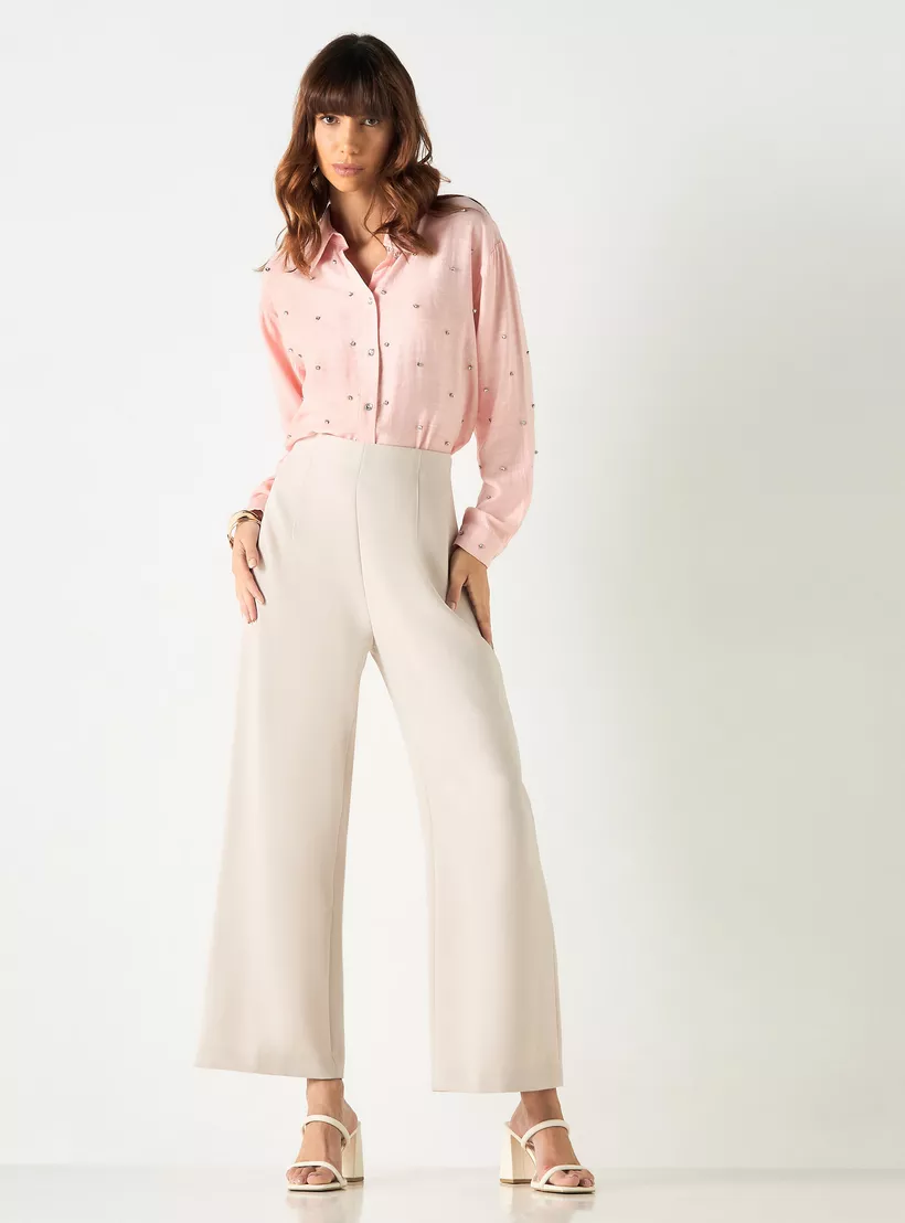 Enhance your wardrobe with this well-tailored shirt, adorned with delicate embellishments. The collared neck and long sleeves add a touch of sophistication. Tailor-made from quality fabric, this chic shirt ensures lasting comfort and is apt for a casual occasion.