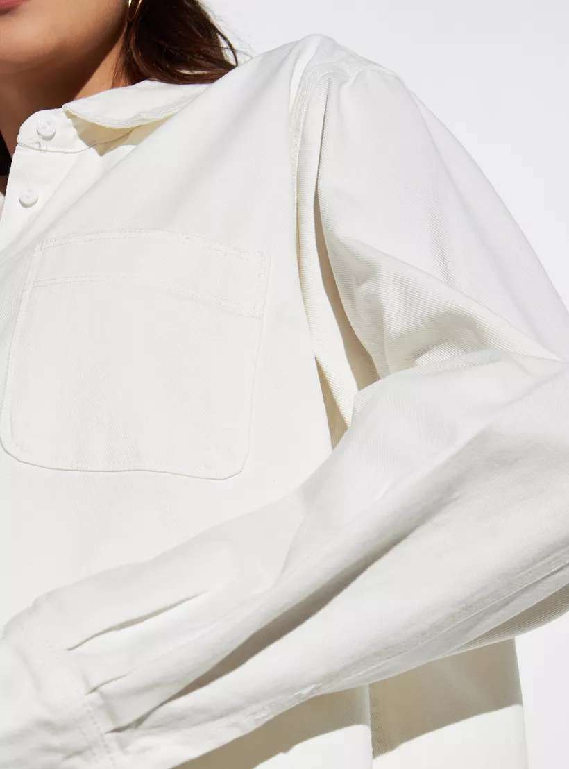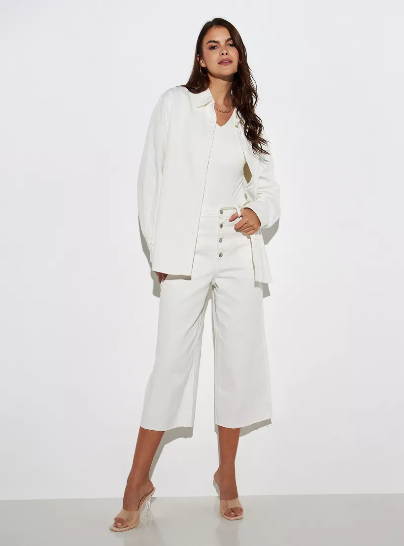 Iconic Solid Oversized Longline Denim Shirt with Pocket