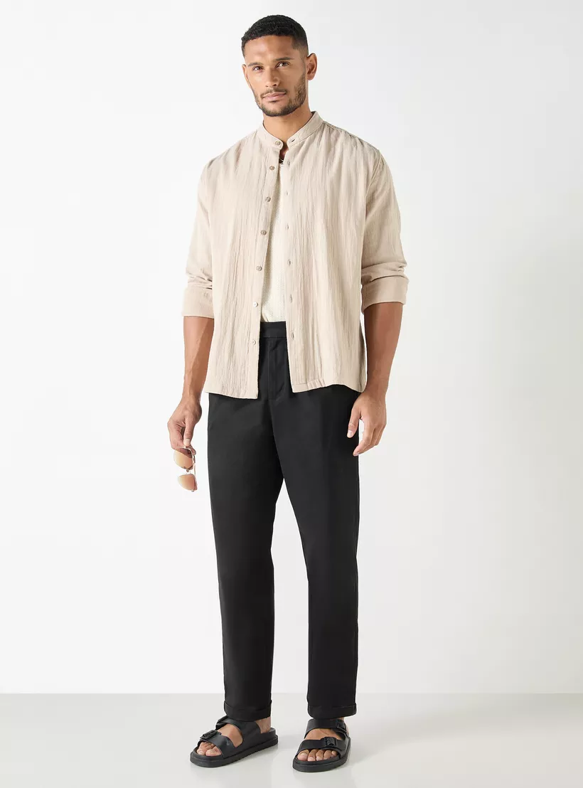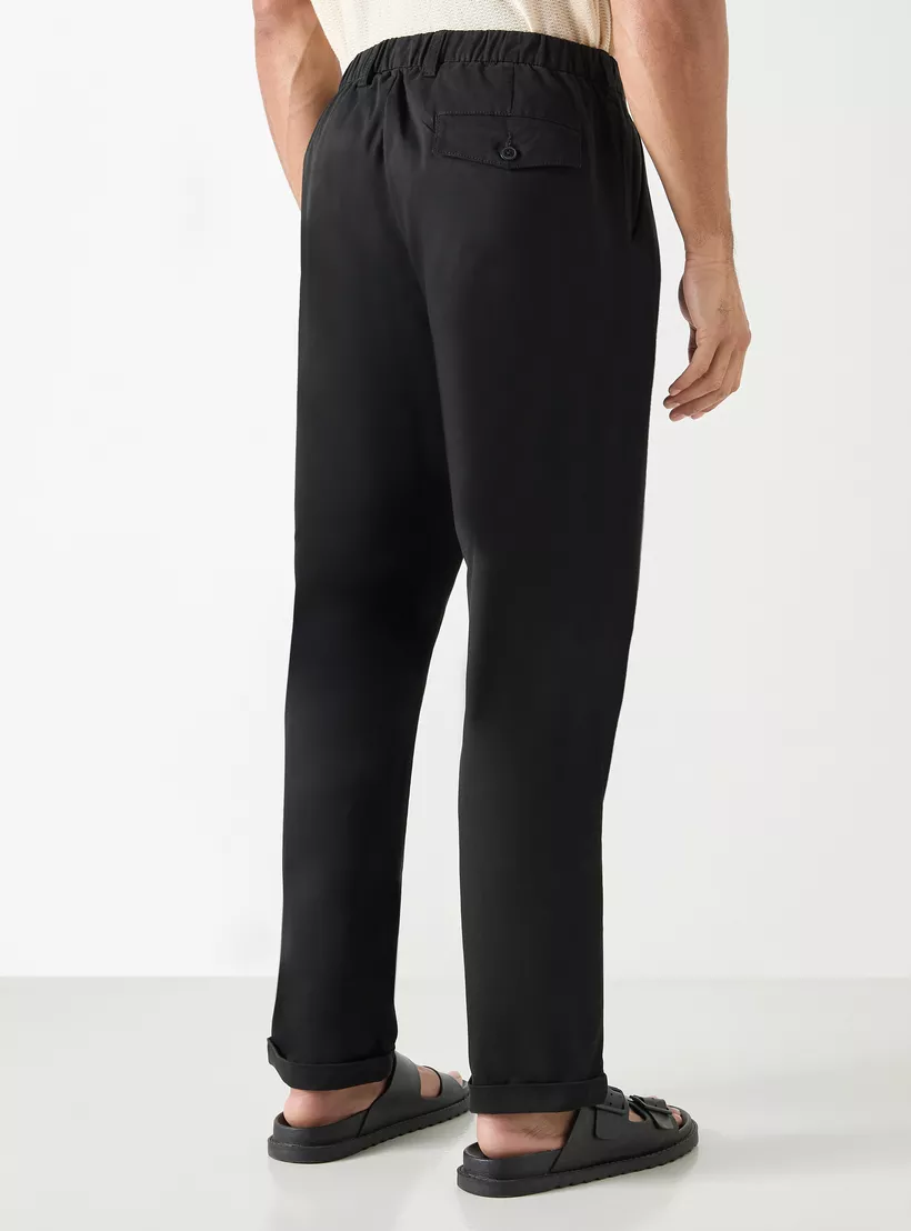 Iconic Solid Regular Fit Trousers with Pockets