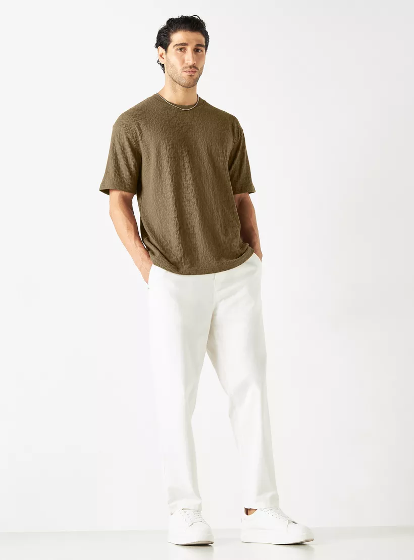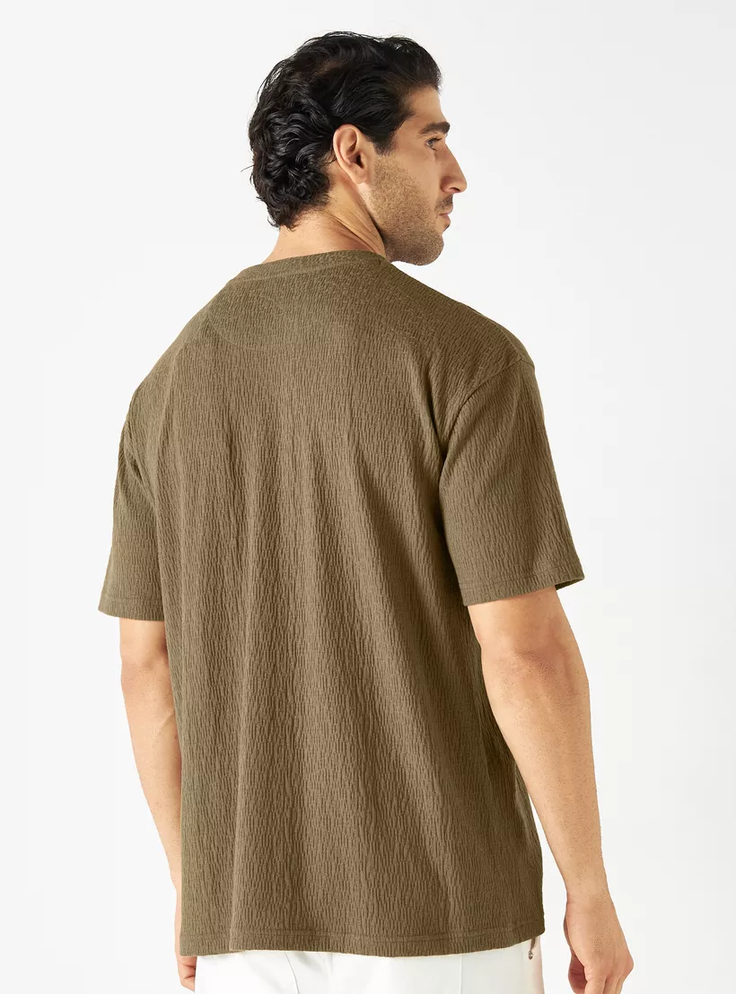 Iconic Textured Crew Neck T-shirt with Short Sleeves
