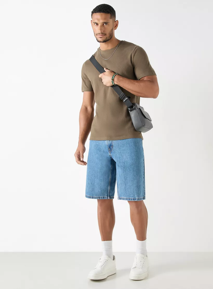 Iconic Textured Crew Neck T-Shirt with Short Sleeves