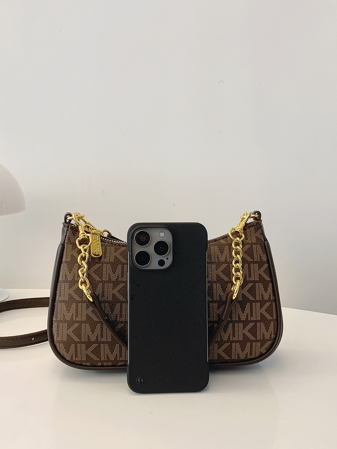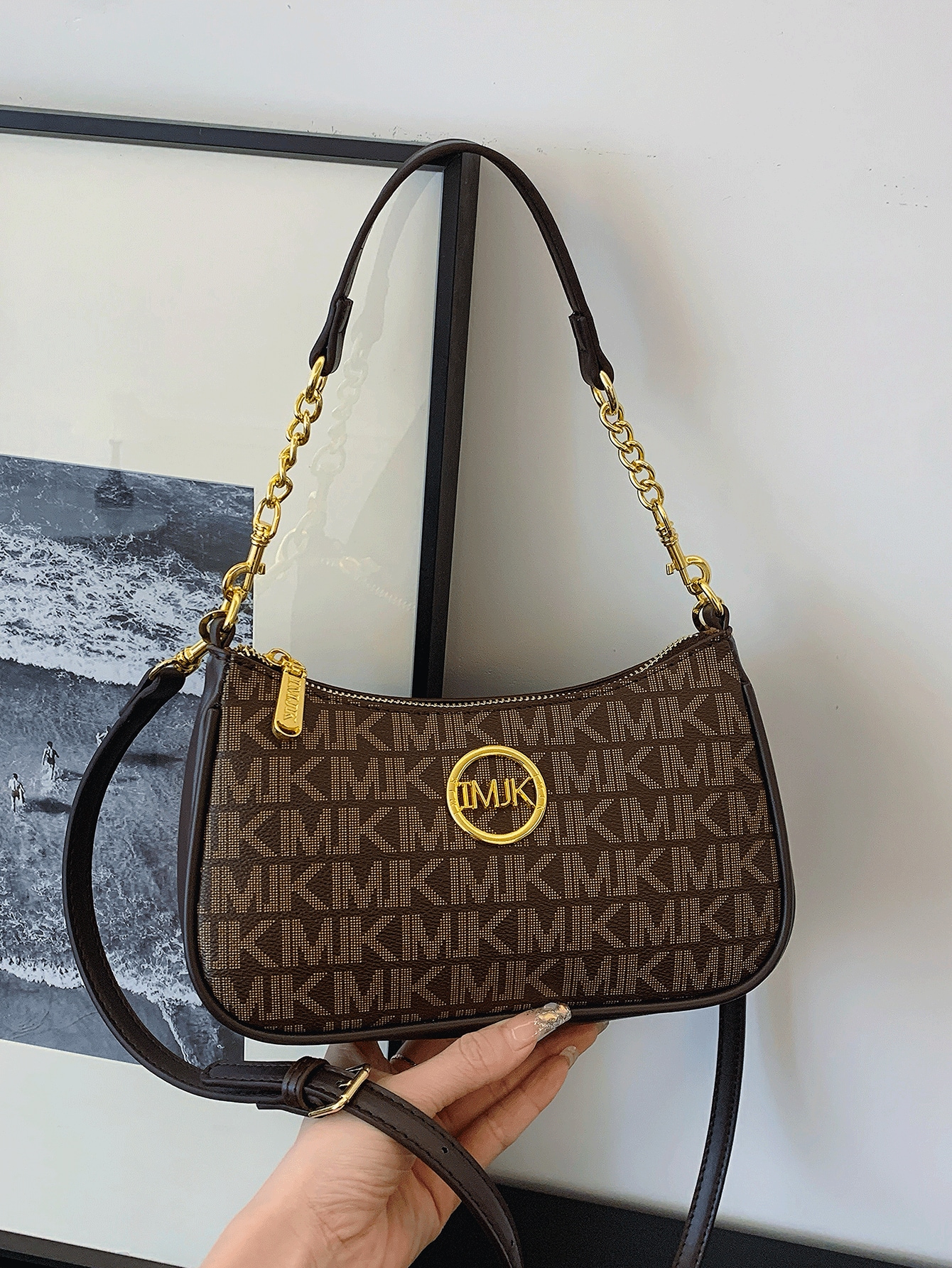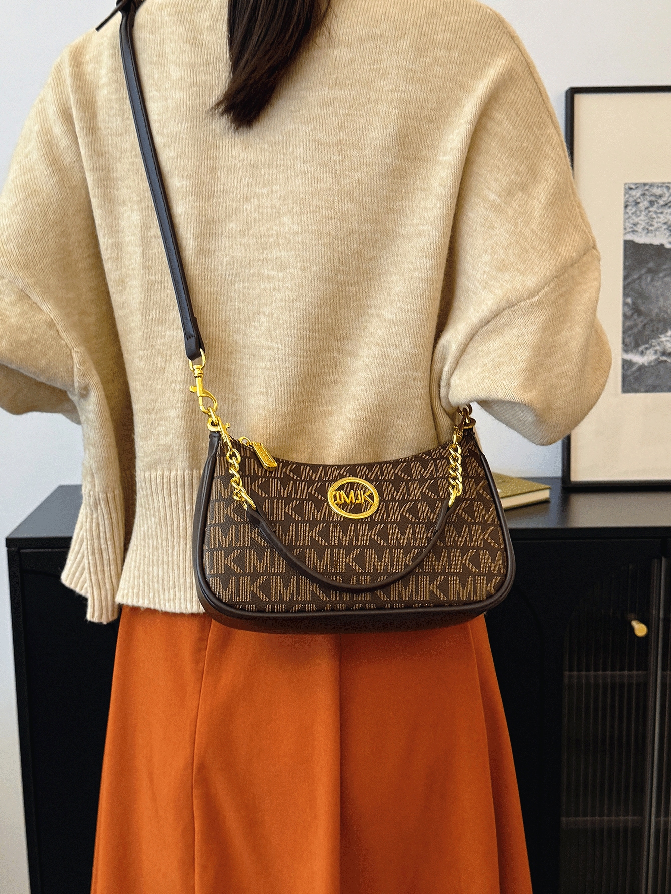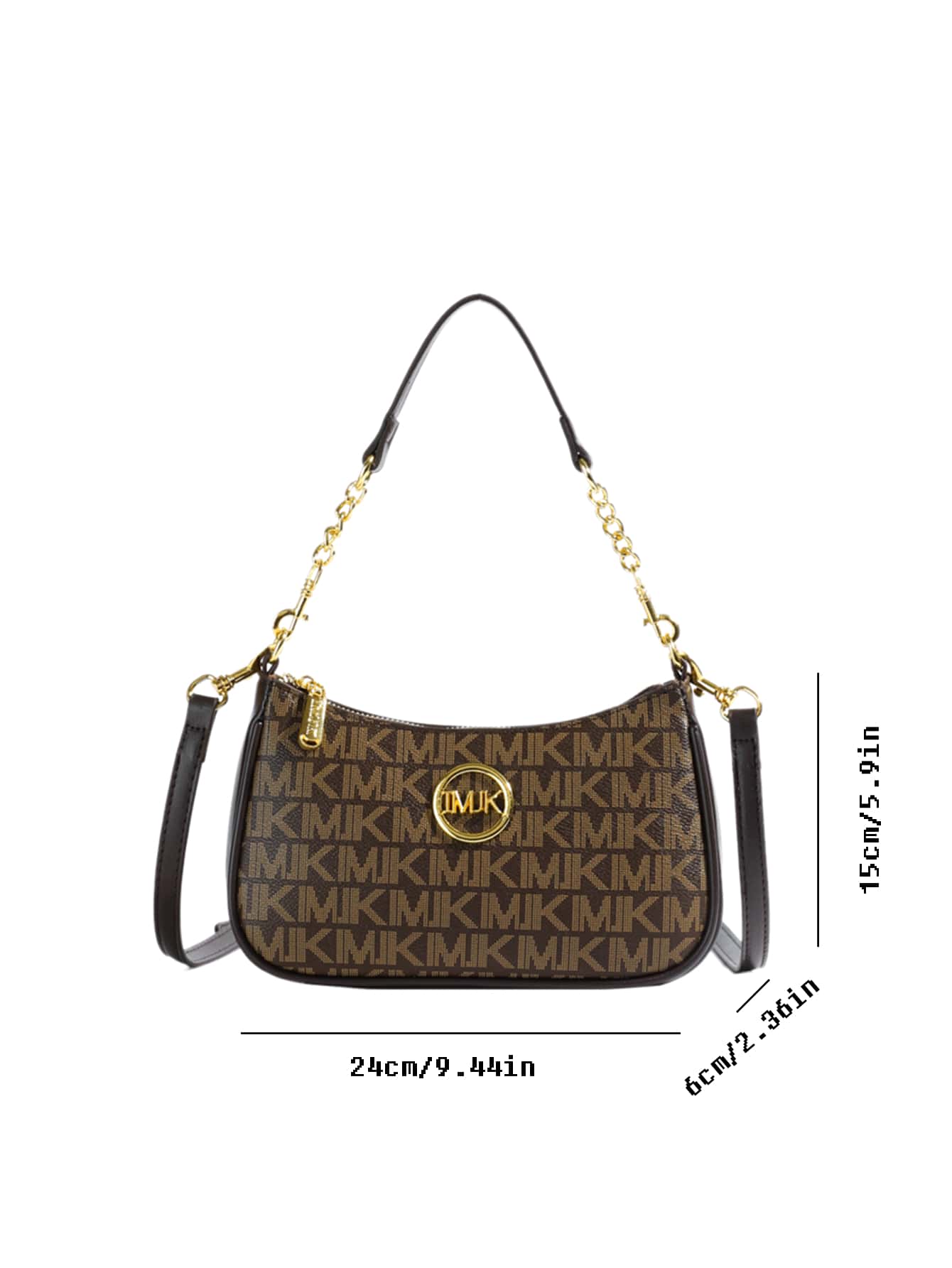 In 2024, The New Fashion Classic Joker Pu Waterproof Fabric M Letter Pattern Printing Design Metal Chain Decoration Design Baguette Bag Shoulder Bag Is Suitable For Shopping.