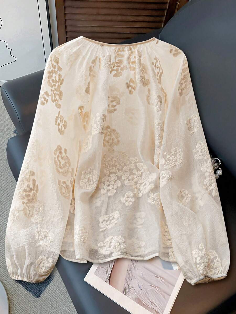 INAWLY Women Casual Button-Down Long Sleeve Semi-Sheer Blouse