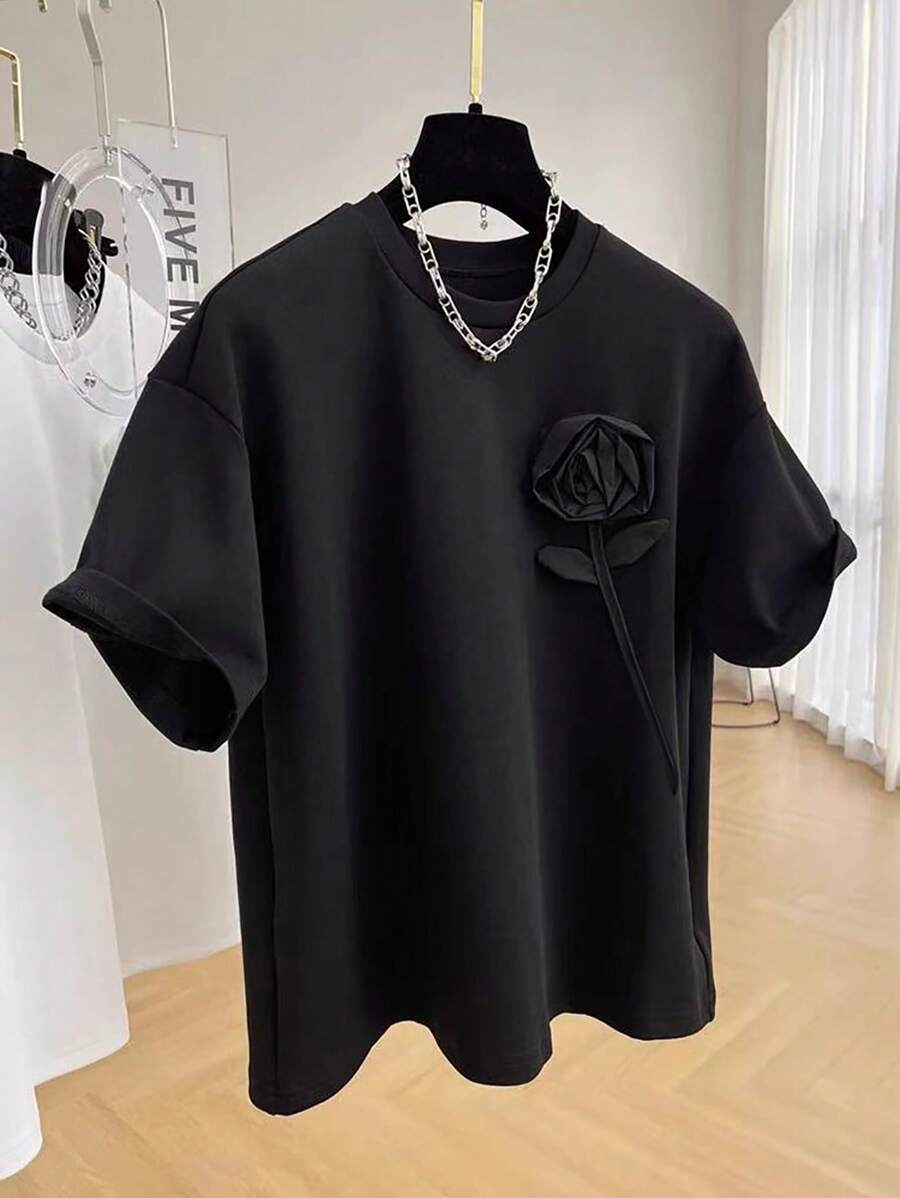 INAWLY Women’s 3D Floral Print Crew Neck Short Sleeve Casual T-Shirt