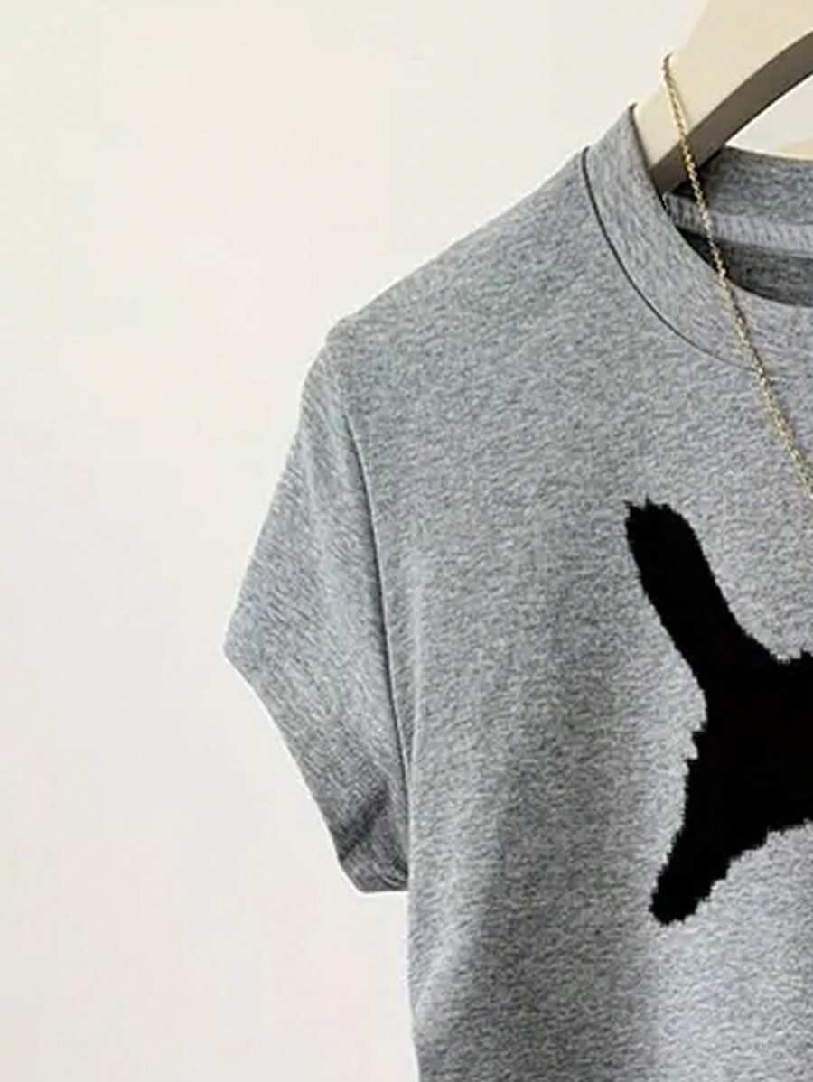 INAWLY Women's Summer Cartoon Cat Print Crew Neck Short Sleeve Pleated Casual T-Shirt Graphic Tees Women Tops quantity