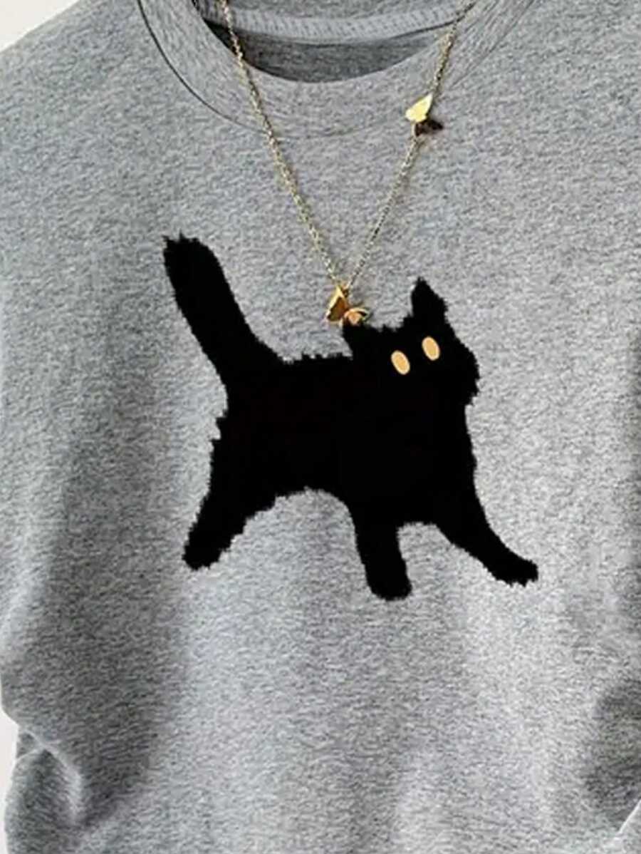 / INAWLY Women’s Summer Cartoon Cat Print Crew Neck Short Sleeve Pleated Casual T-Shirt Graphic Tees Women Tops