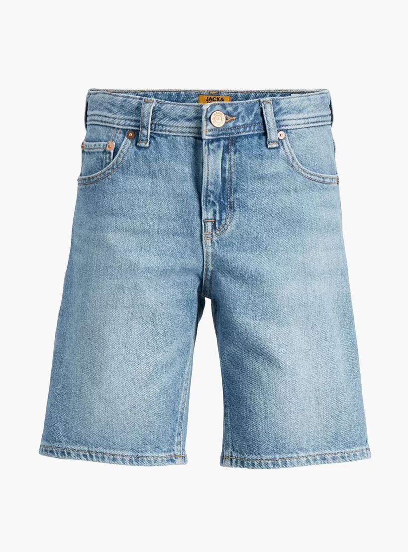 Jack & Jones Junior Solid Denim Shorts with Pockets and Button Closure
