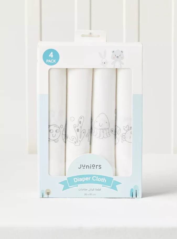 Juniors 4-Piece Printed Swaddle Wrap Set – 86×86 cm