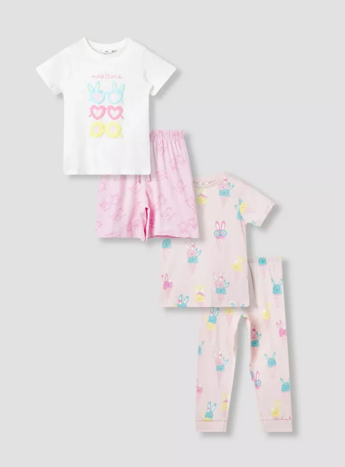 Complete 4-Piece Set – Includes two printed T-shirts and two matching pyjama bottoms.