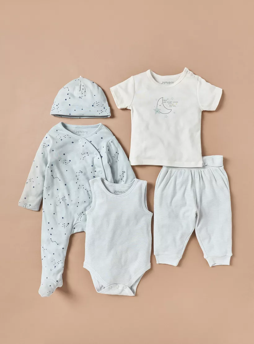 - Complete Set: This 6-piece set includes a selection of essential baby clothing items, all thoughtfully coordinated with matching prints and colors. Each set typically contains a bodysuit, a pair of pants, a hat, mittens, socks, and a bib, making it a versatile and practical gift.