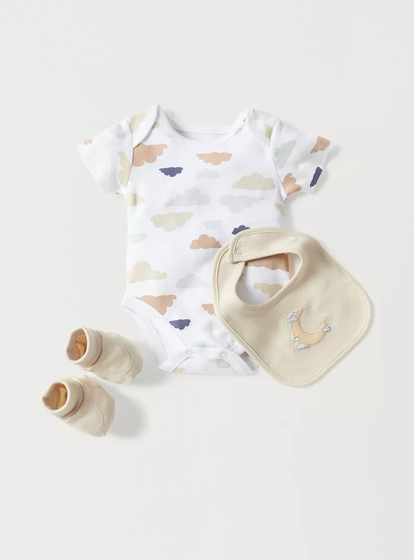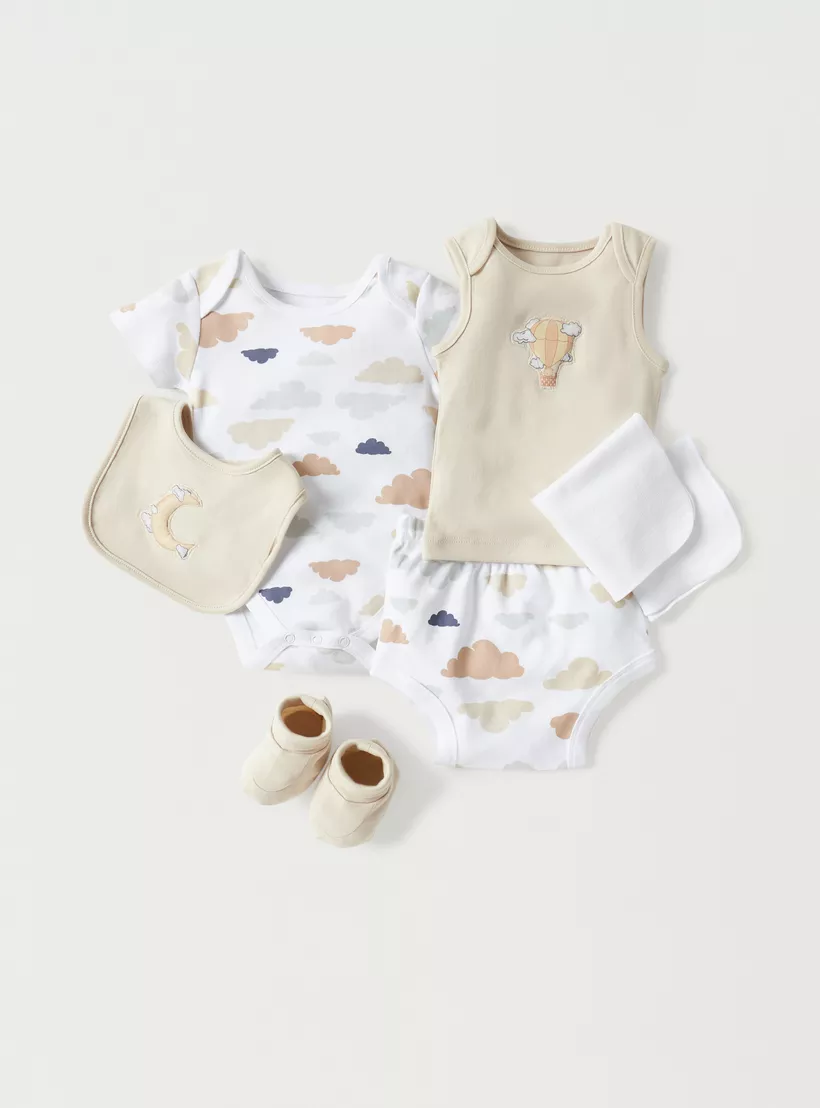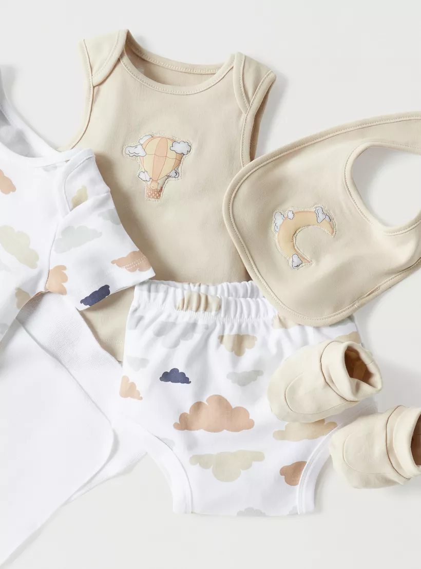 This seven-piece gift set is the perfect way to welcome your new baby boy into the world. Made from cotton, these adorable outfits are soft and comfortable for your little one. With everything you need to get started, this gift set is a must-have for any new parent.