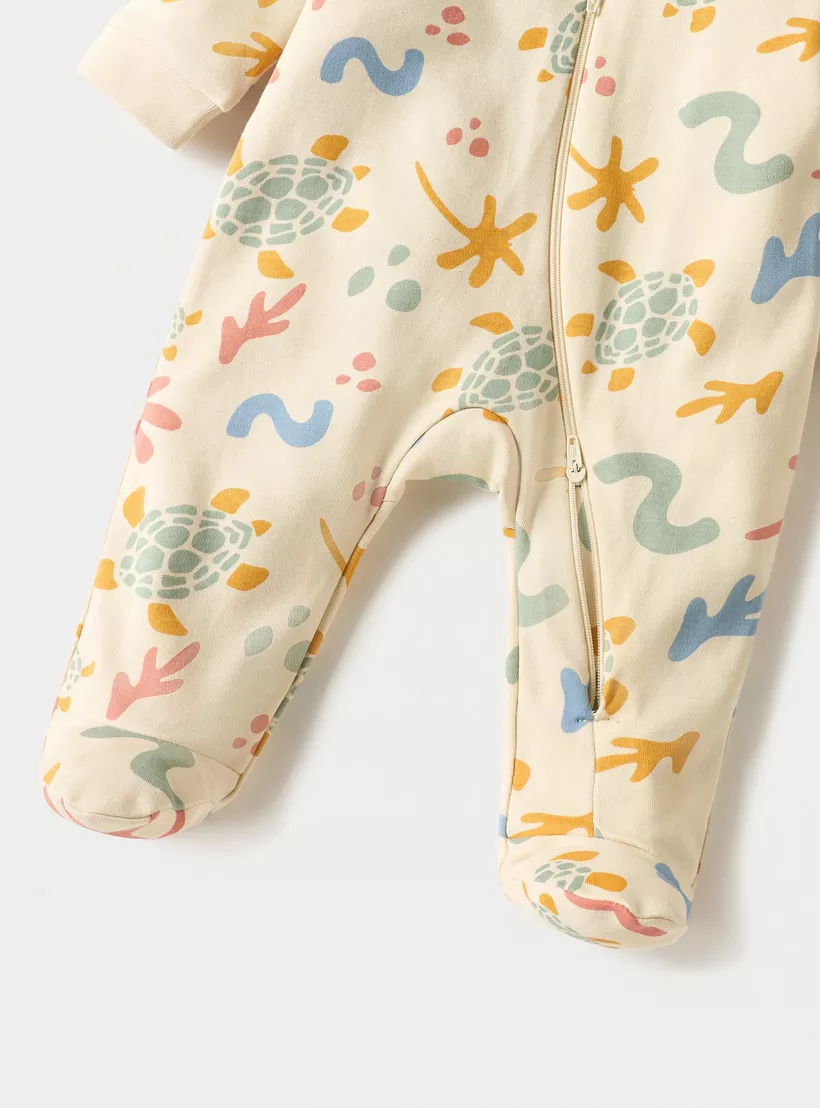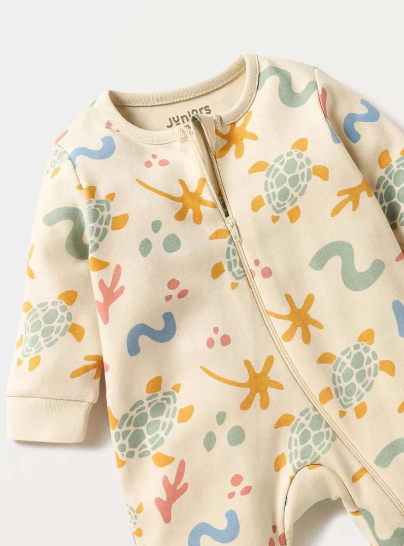 Juniors Abstract Print Sleepsuit with Long Sleeves and Zip Closure