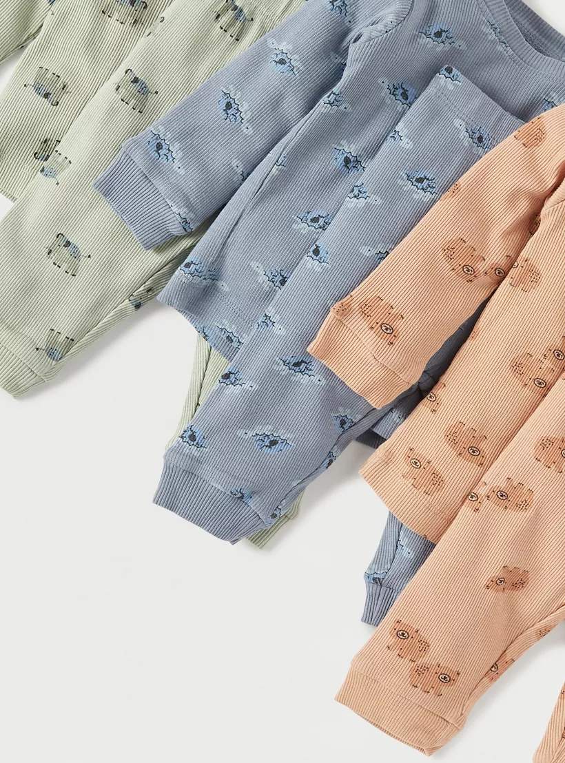 - Set of 3: Includes three T-shirts and matching pyjamas with unique animal prints for versatile and stylish options.